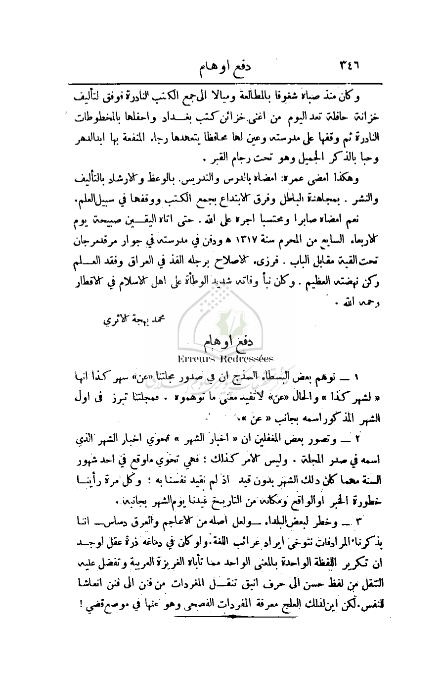 2 - وتصور بعض المغفلين أن (أخبار الشهر) تحوي أخبار الشهر الذي اسمه في صدر المجلة. وليس الأمر كذلك؛ فهي تحوي ما وقع في أحد شهور السنة مهما كان ذلك الشهر بدون قيد إذ لم نقيد نفسنا به؛ وكل مرة رأينا خطورة الخبر أو الواقع ومكانه من التاريخ قيدنا يوم الشهر بجانبه.
