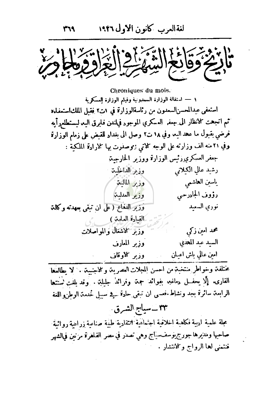 1 - استقالة الوزارة السعدونية وقيام الوزارة العسكرية