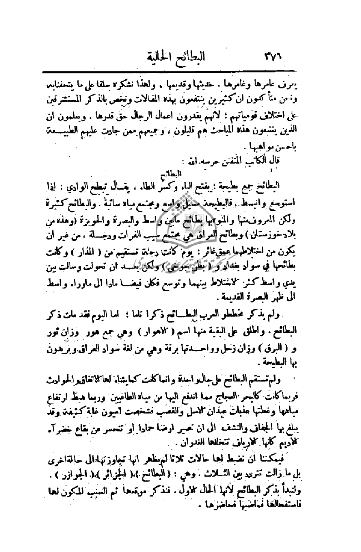 ولم يذكر مخططو العرب البطائح ذكرا تاما؛ أما اليوم فقد مات ذكر البطائح، وأطلق على البقية منها اسم (الأهوار) وهي جمع هور وزان ثور و (البرق) وزان زحل وواحدتها برقة وهي من لغة سواد العراق ويريدون بها البطيحة.