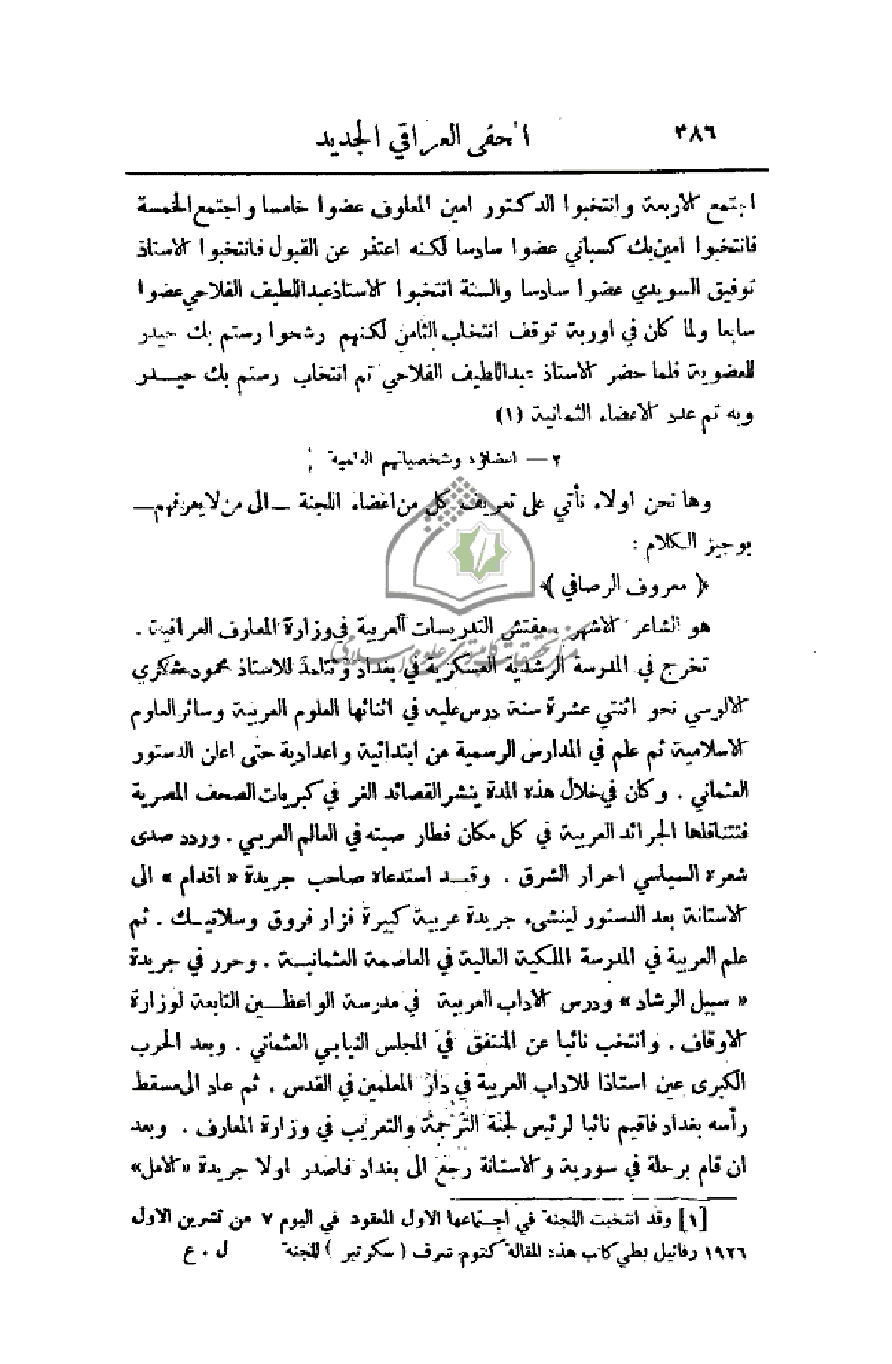 الأستاذ عبد اللطيف الفلاحي عضوا سابعا ولما كان في أوربة توقف انتخاب الثامن لكنهم رشحوا رستم بك حيدر للعضوية فلما حضر الأستاذ عبد اللطيف الفلاحي تم انتخاب رستم بك حيدر وبه تم عدد الأعضاء الثمانية.