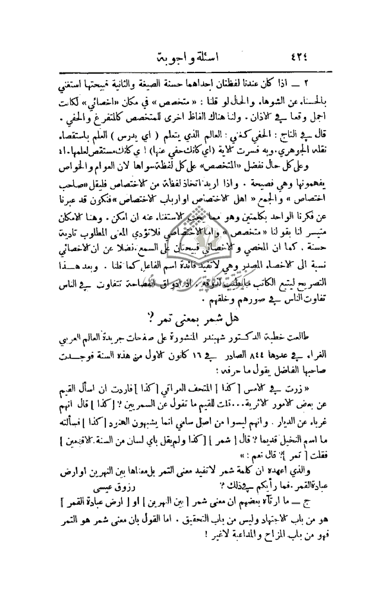 والذي أعهده أن كلمة شمر لا تفيد معنى التمر بل معناها بين النهرين أو أرض عبادة القمر، فما رأيكم في ذلك؟