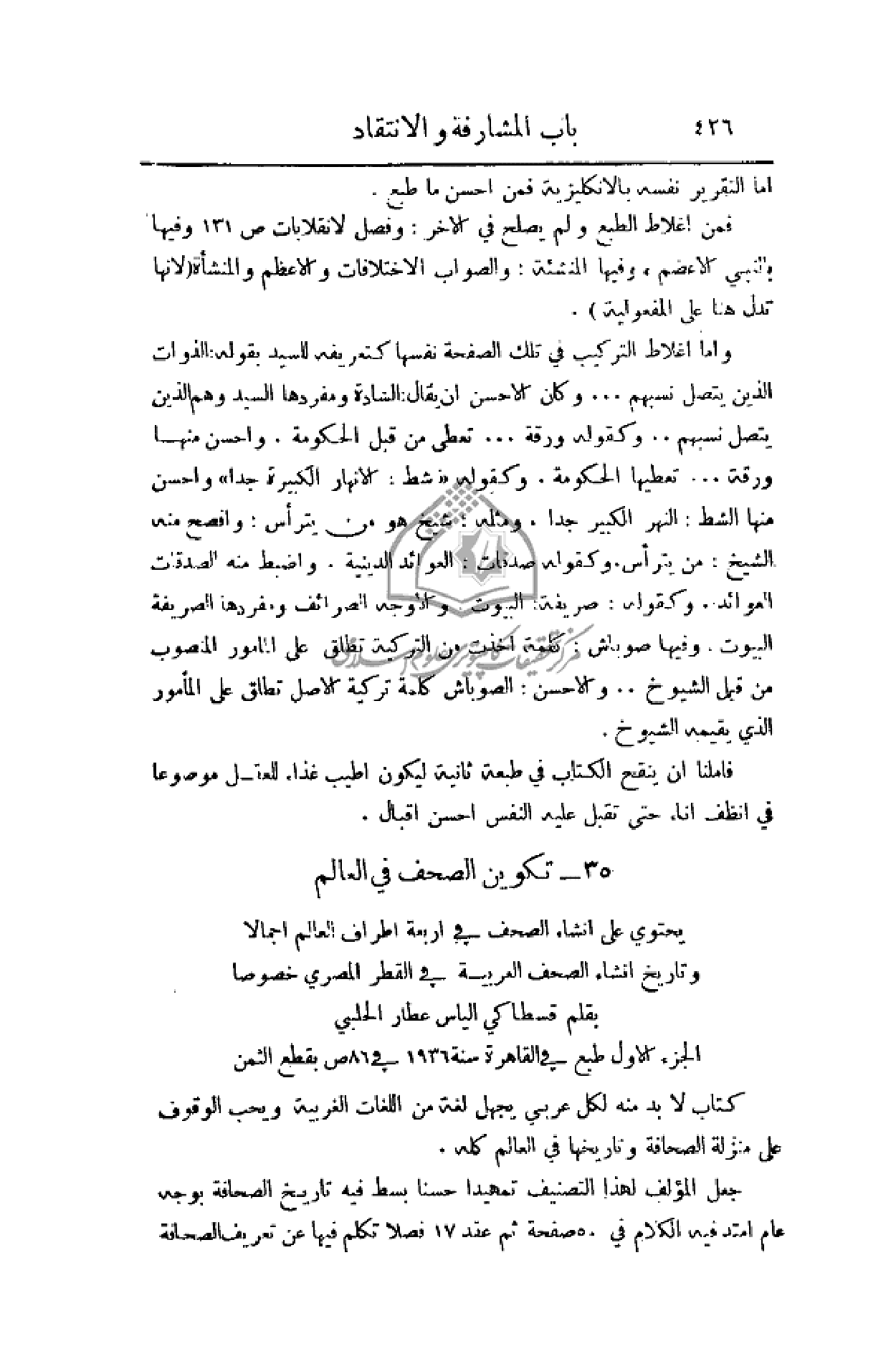 فأملنا أن ينقح الكتاب في طبعة ثانية ليكون أطيب غذاء للعقل موضوعا في انظف إناء حتى تقبل عليه النفس احسن إقبال.