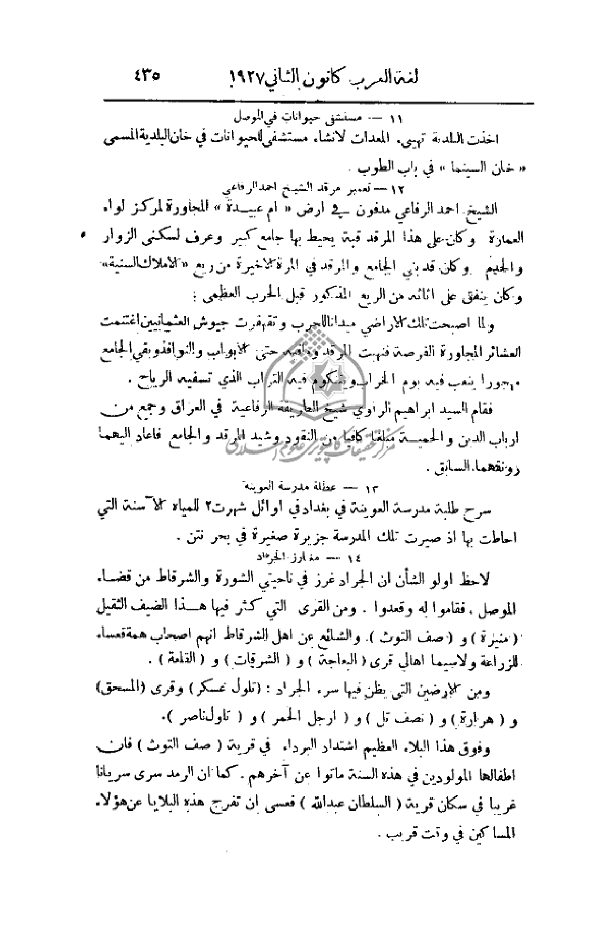وفوق هذا البلاء العظيم اشتداد البرداء في قرية (صف التوث) فإن أطفالها المولودين في هذه السنة ماتوا عن آخرهم. كما أن الرمد سرى سريانا غريبا في سكان قرية (السلطان عبد الله) فعسى أن تفرج هذه البلايا عن هؤلاء المساكين في وقت قريب.