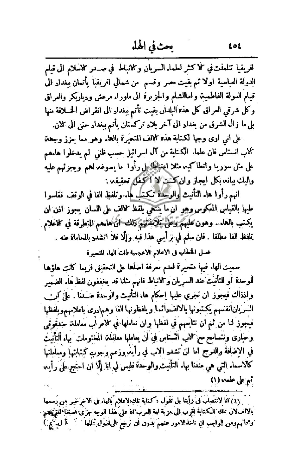 سميت الهاء فيها متحيرة لعدم معرفة اصلها على التحقيق فربما كانت هاؤها للوحدة أو للتأنيث عند السريان والأنباط فإنهم مثلنا قد يخففون لفظ هاء الضمير وإذ ذاك فيجوز أن نجري عليها أحكام هاء التأنيث والوحدة عندنا. على إن السريان أنفسهم يكتبونها بالألف دائما ويلفظونها ألفا وهم أدرى بأعلامهم وبلفظها فيجوز لنا من ثم أن نتابعهم في لفظها وأن نعاملها في الأعراب معاملة حندقوقى وحبارى ونتسامح مع الأب انستاس في أن يعاملها معاملة المختومات بهاء التأنيث في الإضافة والدرج أما أن تشَّدد الأب في رأيه وزعم وجوب كتابتها ومعاملتها كالأسماء التي هي عندنا بهاء التأنيث والوحدة فليس لي أنا إلاَّ أن احتج على رأيه ثم على علمه