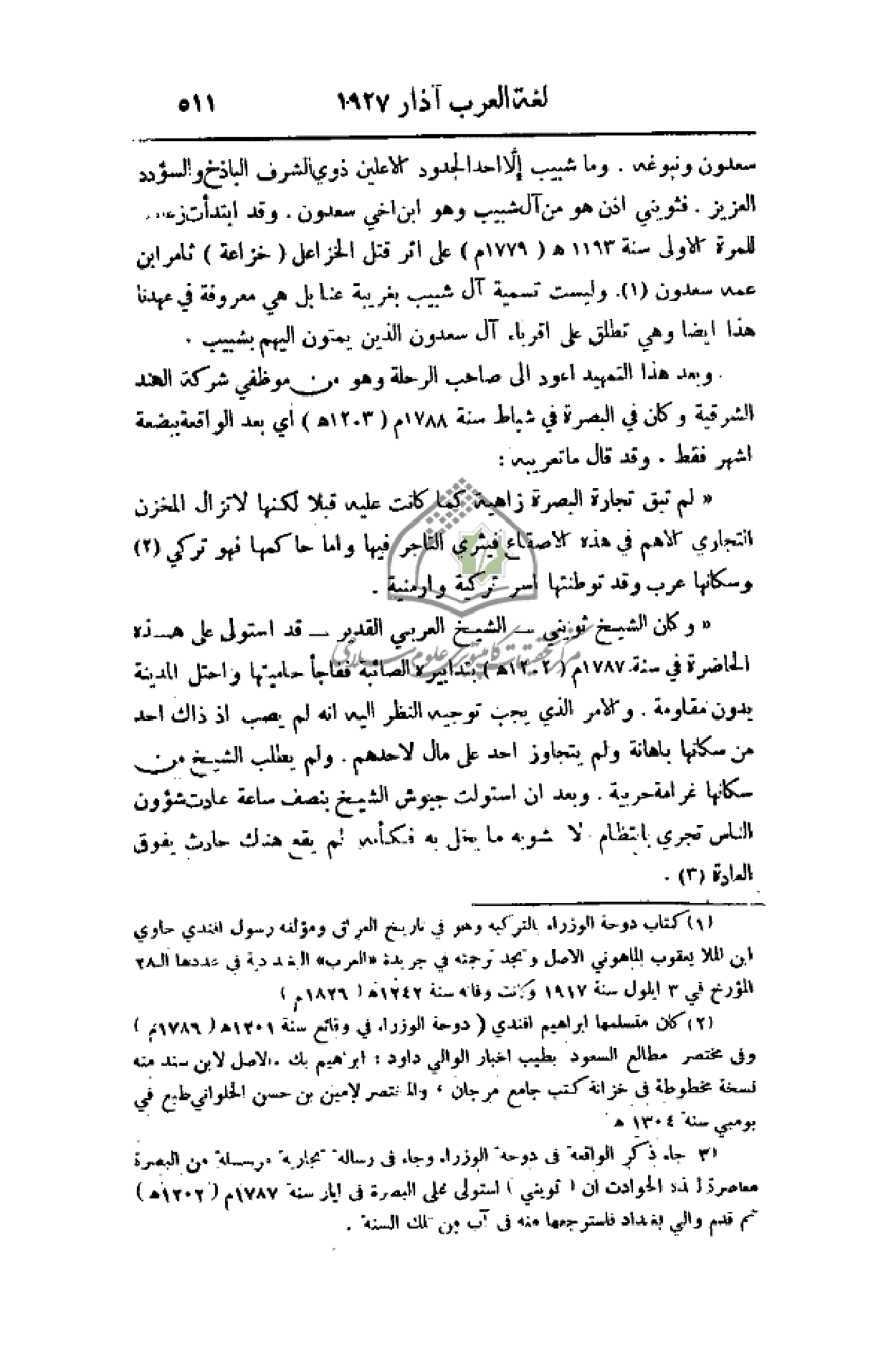 وبعد هذا التمهيد أعود إلى صاحب الرحلة وهو من موظفي شركة الهند الشرقية وكان في البصرة في شباط سنة 1788م (1203هـ) أي بعد الواقعة ببضعة أشهر فقط. وقد قال ما تعريبه: