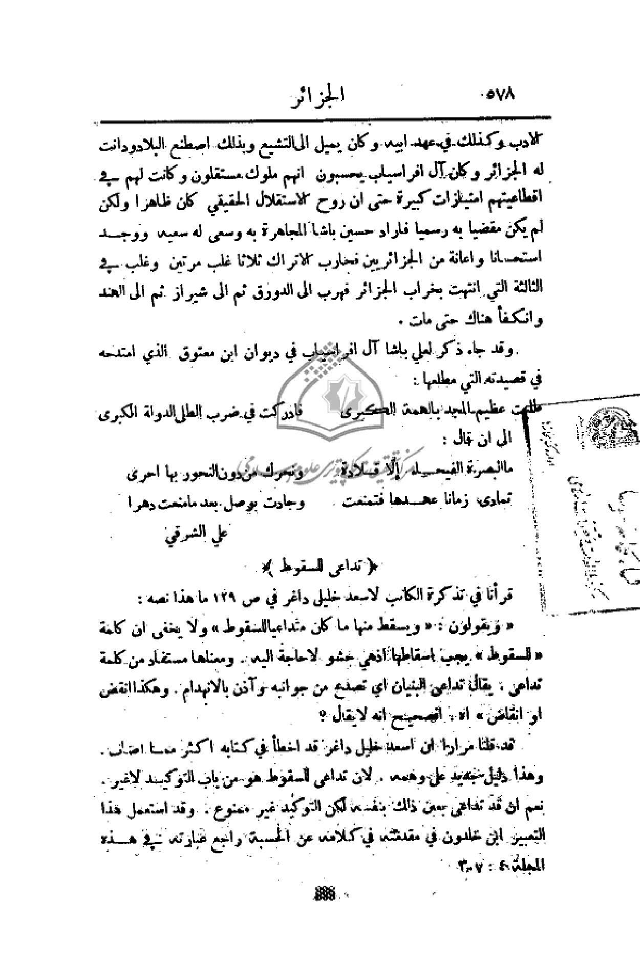 قرأنا في تذكرة الكاتب لأسعد خليل داغر في ص129 ما هذا نصه: