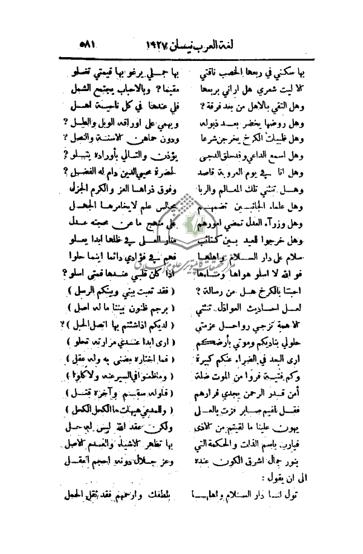 وهل أنا في يوم العروبة قاصد ... لحضرة محي الدين دام له الفضل؟