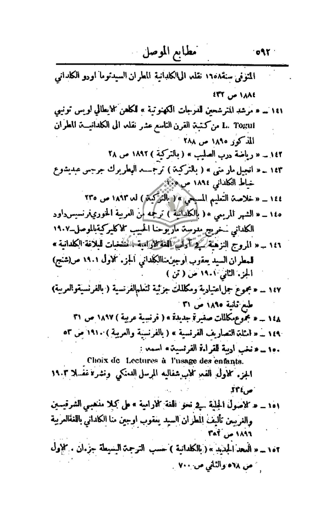 146 - (المروج النزهية في آداب اللغة الارامية. منتخبات للبلاغة الكلدانية) للمطران السيد يعقوب اوجين منا الكلداني الجزء الأول 1901 ص (شنج) الجزء الثاني 1901 ص (تن)