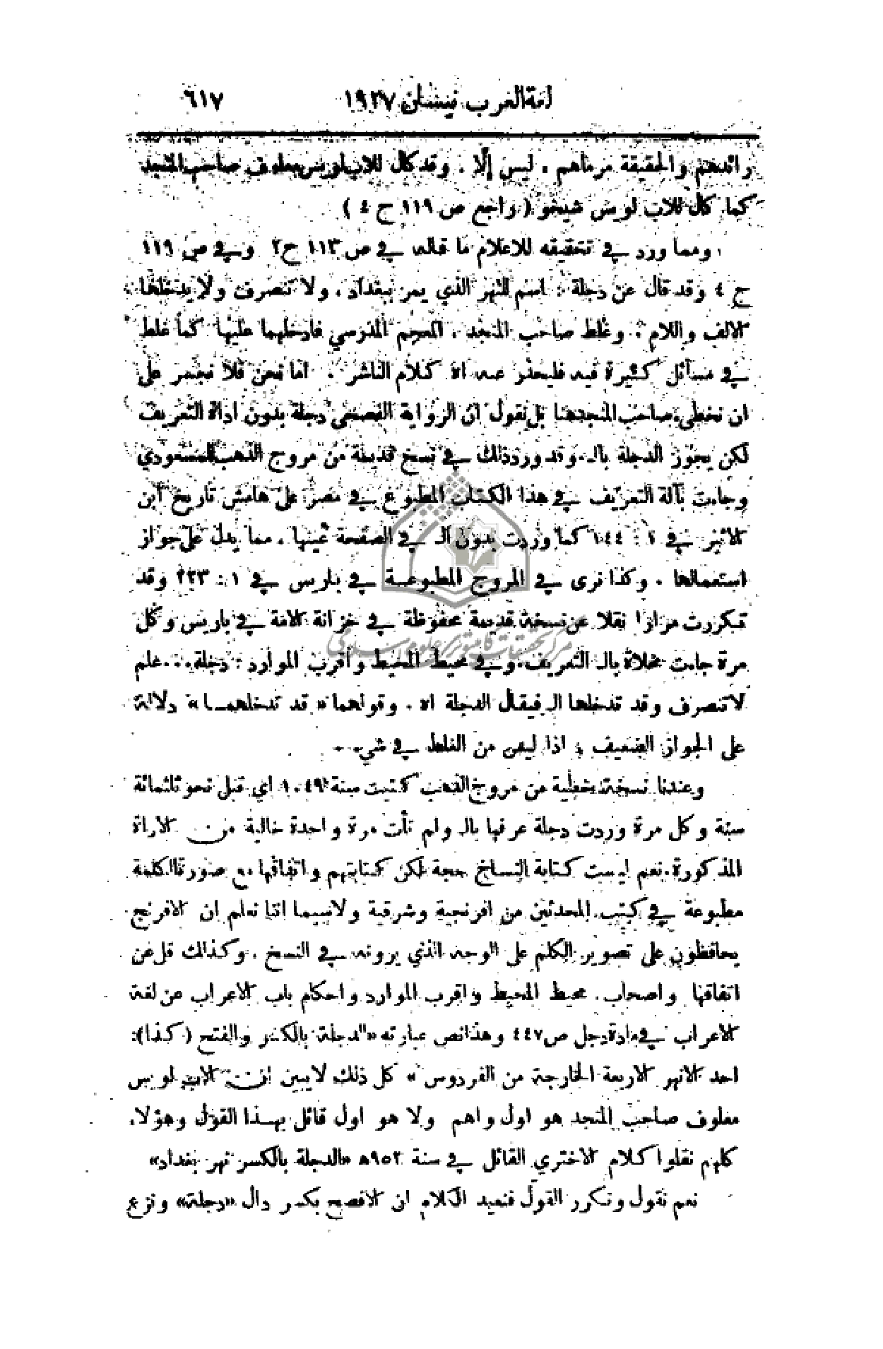 وعندنا نسخة خطية من مروج الذهب كتبت سنة 1049 أي قبل نحو ثلثمائة سنة وكل مرة وردت دجلة عرفها بأل ولم تأت مرة واحدة خالية من الأداة المذكورة. نعم ليست كتابة النساخ حجة لكن كتابتهم واتفاقها مع صورة الكلمة مطبوعة في كتب المحدثين من إفرنجية وشرقية ولا سيما إننا نعلم أن الإفرنج يحافظون على تصوير الكلم على الوجه الذي يرونه في النسخ، وكذلك قل عن اتفاقها وأصحاب محيط المحيط واقرب الموارد وأحكام باب الأعراب عن لغة الأعراب في مادة دجل ص447 وهذا نص عبارته (الدجلة بالكسر والفتح (كذا): أحد الأنهر الأربعة الخارجة من الفردوس) كل ذلك لا يبين أن الأب لويس معلوف صاحب المنجد هو أول وأهم ولا هو أول قائل بهذا القول وهؤلاء كلهم نقلوا كلام الاختري القائل في سنة 952هـ (الدجلة بالكسر نهر بغداد)