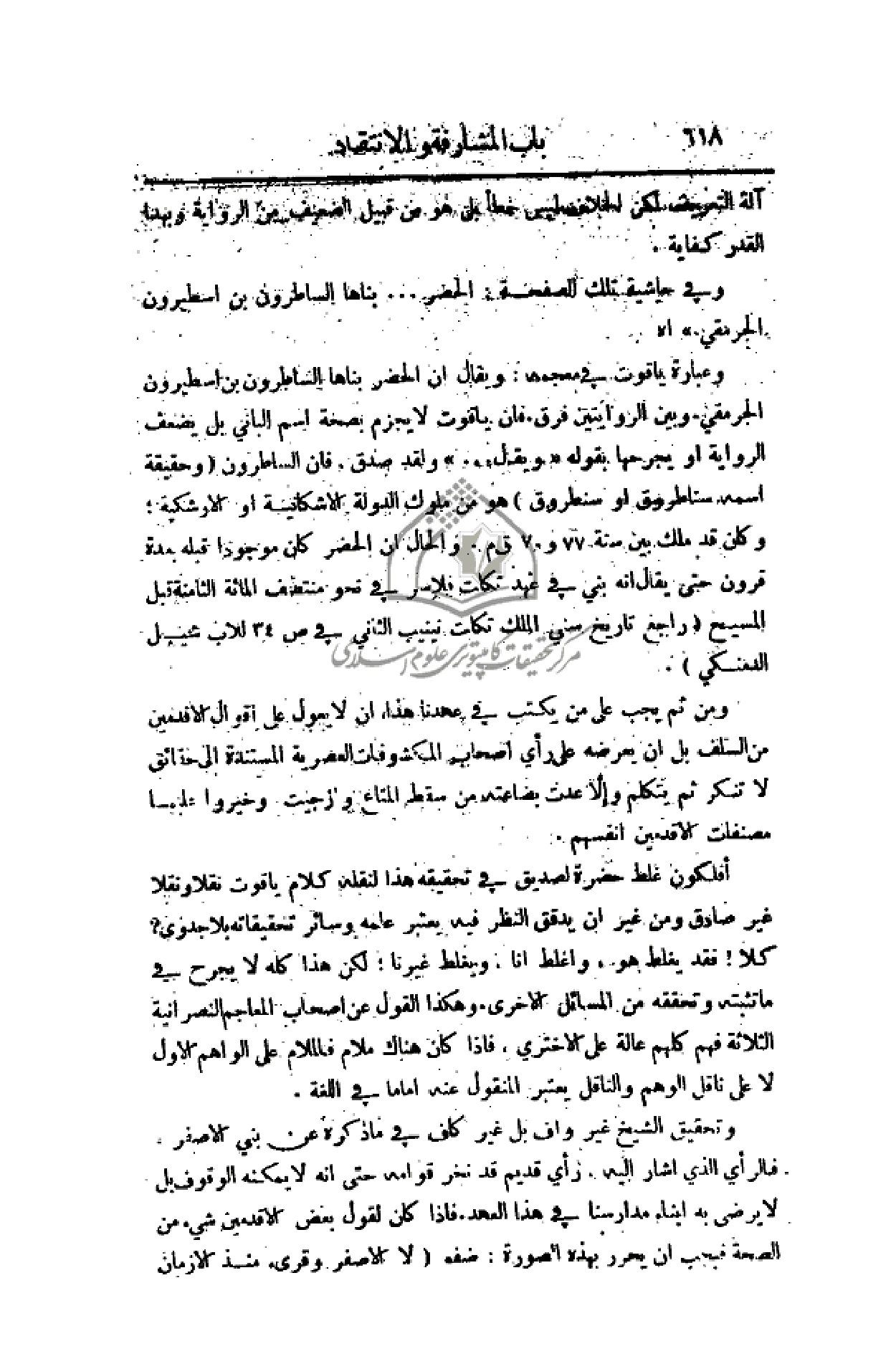أفلكون غلط حضرة لصديق في تحقيقه هذا لنقله كلام ياقوت نقلا ونقلا غير صادق ومن غير أن يدقق النظر فيه يعتبر علمه وسائر تحقيقاته بلا جدوى؟ كلا! فقد يغلط هو، واغلط أنا، ويغلط غيرنا؛ لكن هذا كله لا يجرح في ما تثبته وتحققه من المسائل الأخرى. وهكذا القول عن أصحاب المعاجم النصرانية الثلاثة فهم كلهم عالة على الاختري، فإذا كان هناك ملام فالملام على الواهم الأول لا على ناقل الوهم والناقل يعتبر المنقول عنه إماما في اللغة.