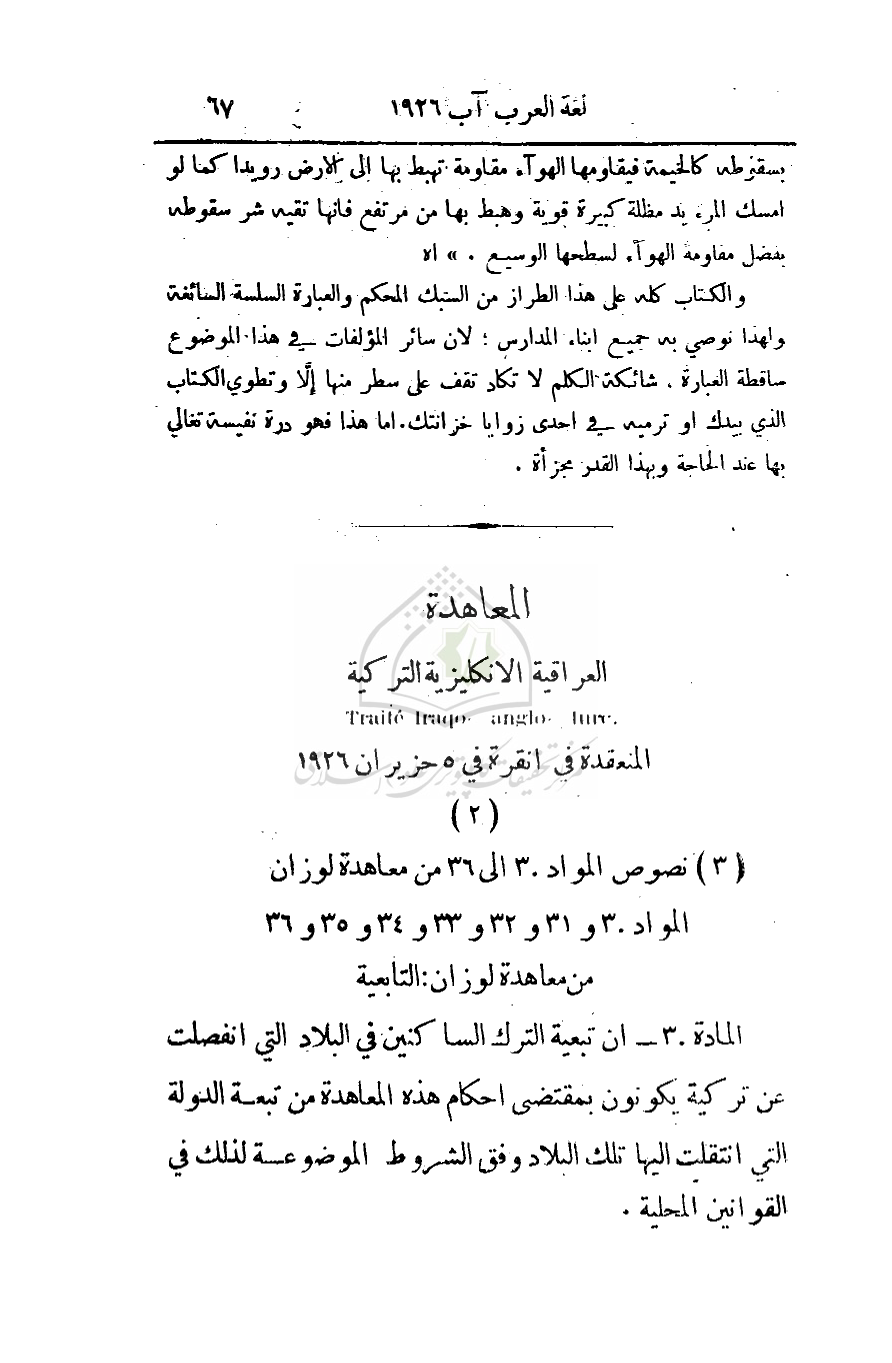 (3) نصوص المواد 30 إلى 36 من معاهدة لوزان المواد 30 و31 و32 و33 و34 و35 و36