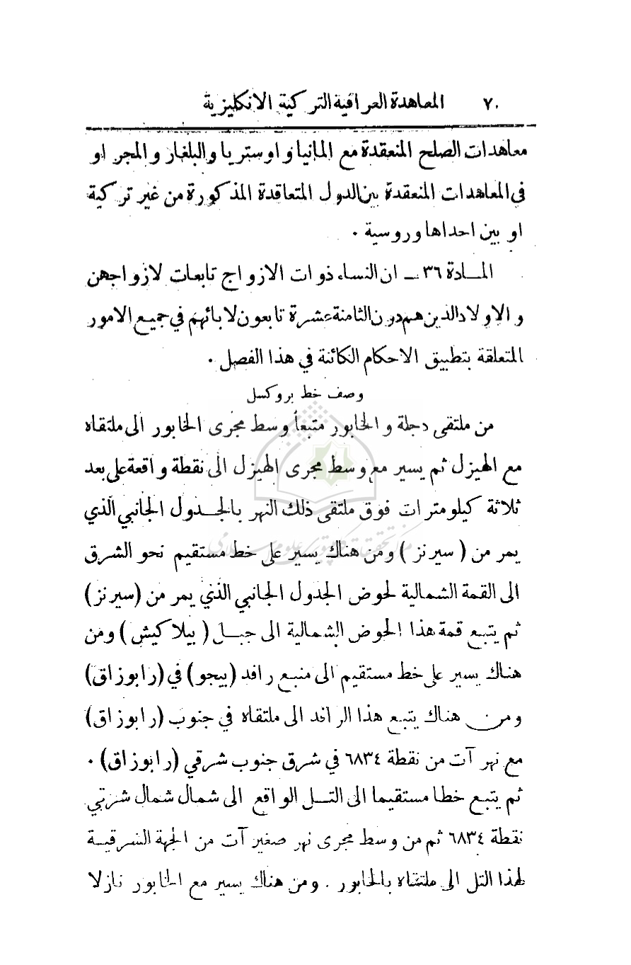 معاهدات الصلح المنعقدة مع ألمانيا وأوستريا والبلغار والمجر أو في المعاهدات المنعقدة بين الدول التعاقدة المذكورة من غير تركية أو بين إحداها وروسية.