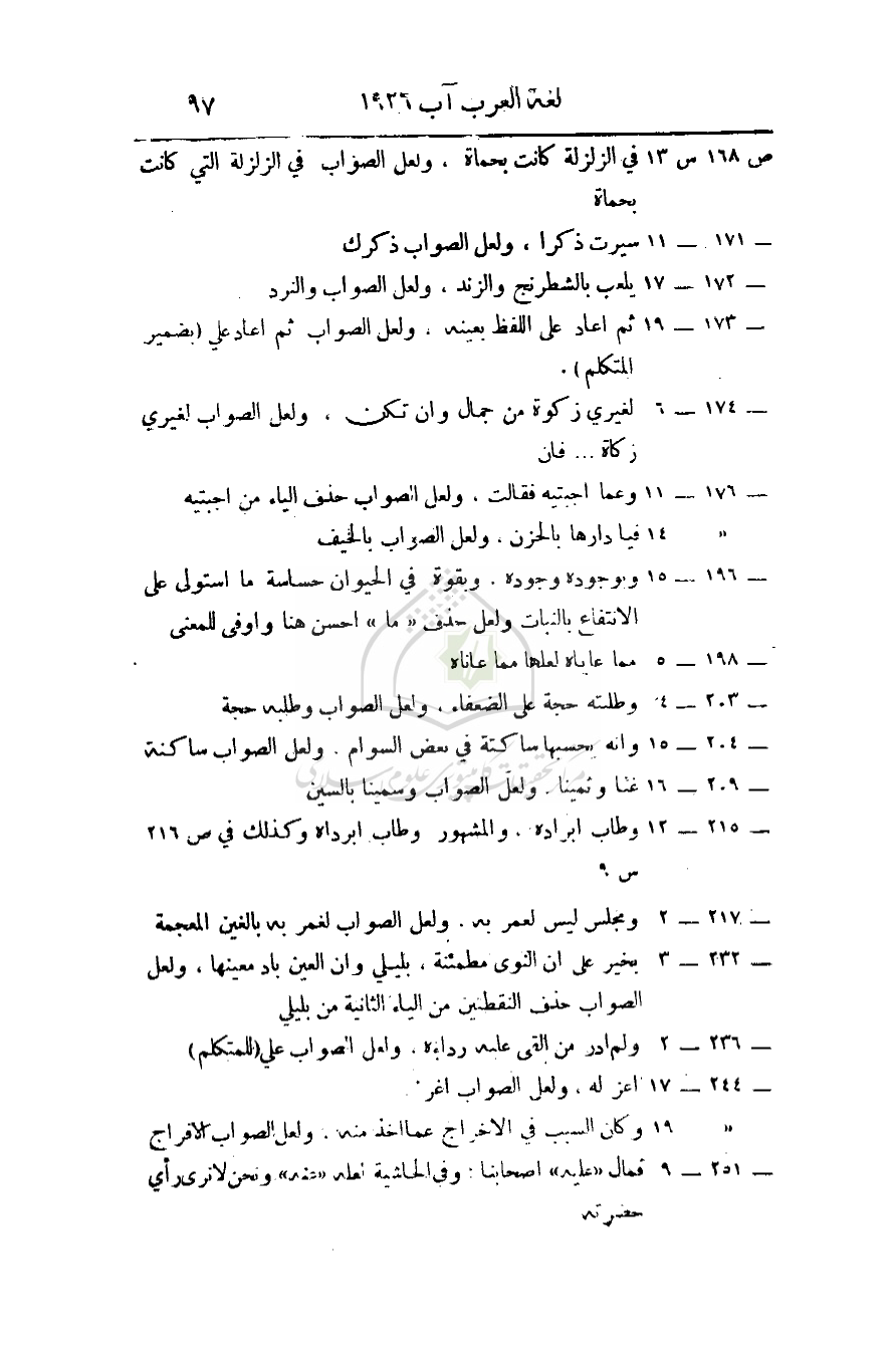 ص173 س19 ثم أعاد على اللفظة بعينه، ولعل الصواب ثم أعاد علي (بضمير المتكلم).