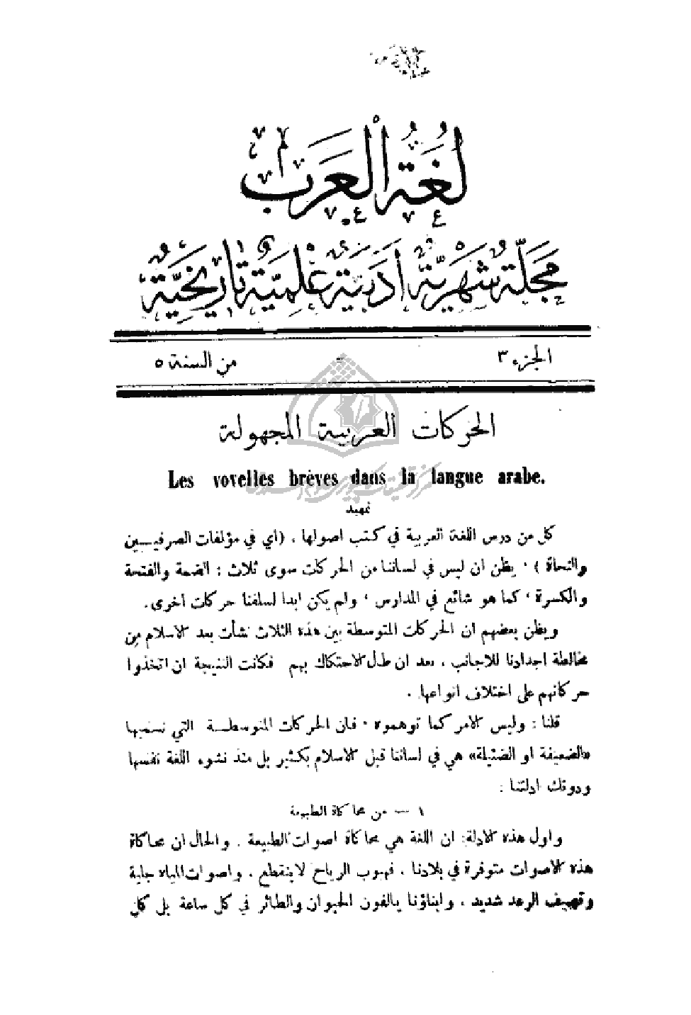 كل من درس اللغة العربية في كتب أصولها، (أي في مؤلفات الصرفيين والنحاة)، يظن أن ليس في لساننا من الحركات سوى ثلاث: الضمة والفتحة والكسرة، كما هو شائع في المدارس، ولم يكن أبداً لسلفنا حركات أخرى.