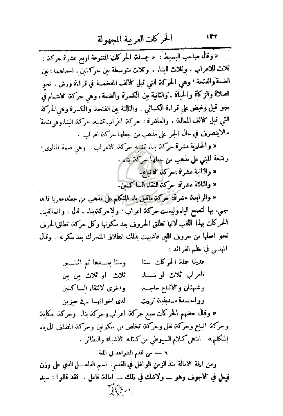 (وقال بعضهم الحركات سبع حركة إعراب وحركة بناء وحركة حكاية وحركة اتباع وحركة نقل وحركة تخلص من سكونين وحركة المضاف إلى ياء المتكلم). انتهى كلام السيوطي من كتابه الأشباه والنظائر.