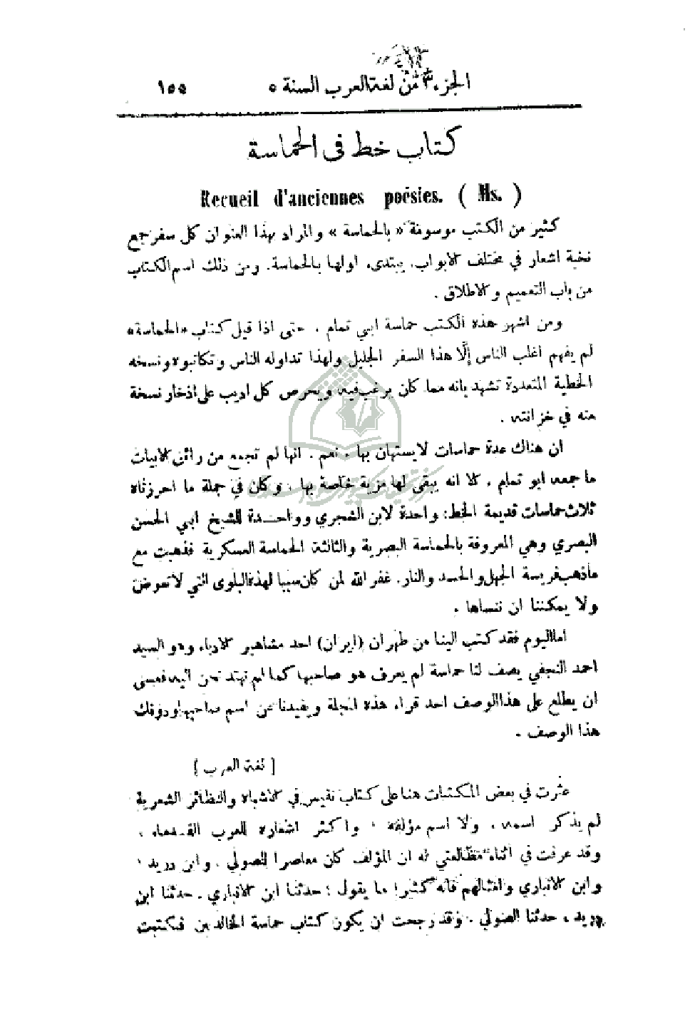 إن هناك عدة حماسات لا يستهان بها. نعم، إنها لم تجمع من رائق الأبيات ما جمعه أبو تمام، إلا أنه يبقى لها مزية خاصة بها، وكان في جملة ما أحرزناه ثلاث حماسات قديمة الخط: واحدة لابن الشجري وواحدة للشيخ أبي الحسن البصري وهي المعروفة بالحماسة البصرية والثالثة الحماسة العسكرية فذهبت مع ما ذهب فريسة الجهل والحسد والنار، غفر الله لمن كان سببا لهذا البلوى التي لا تعوض ولا يمكننا أن ننساها.