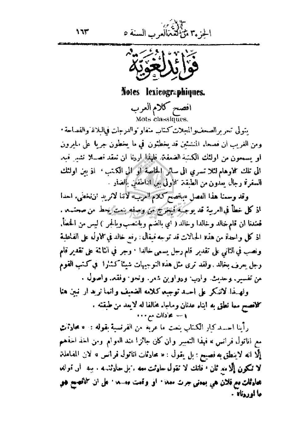 يتولى تحرير الصحف والمجلات كتاب متفاوتو الدرجات في البلاغة والفصاحة، ومن الغريب أن فصحاء المنشئين قد يخطئون في ما يخطئون جريا على ما يرون أو يسمعون من أولئك الكتبة الضعفة. فلهذا أردنا أن نعقد فصلا نشير فيه إلى تلك الأوهام لئلا تسري إلى سائر الخاصة أو إلى الكتب. إذ بين أولئك السفرة رجال يعدون من الطبقة الأولى بين الناطقين بالضاد.