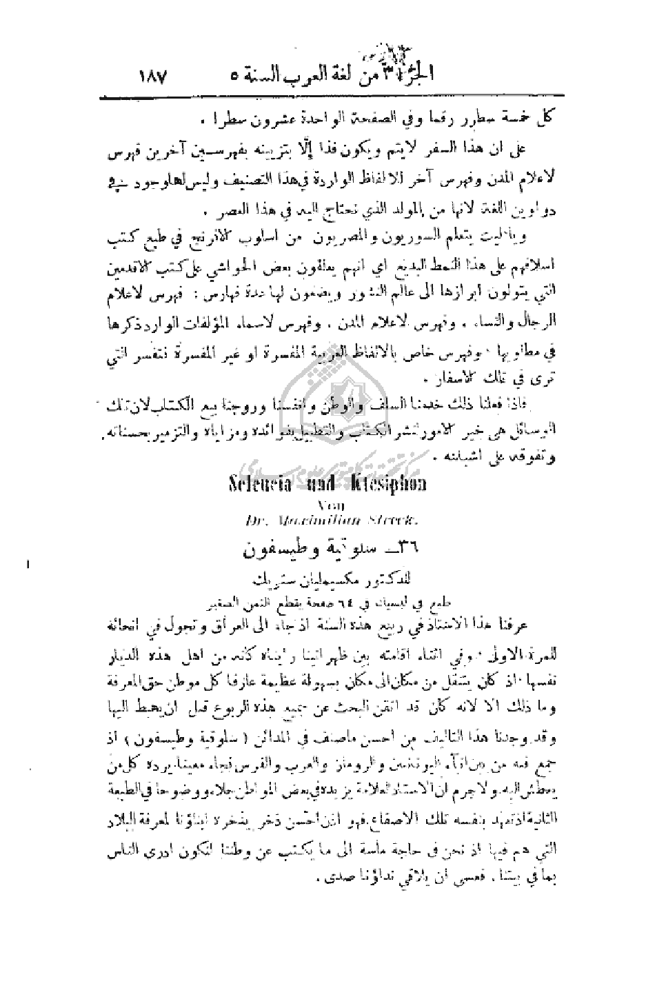 للدكتور مكسيمليان ستريك، طبع في لبسيك في 64 صفحة بقطع الثمن الصغير.
