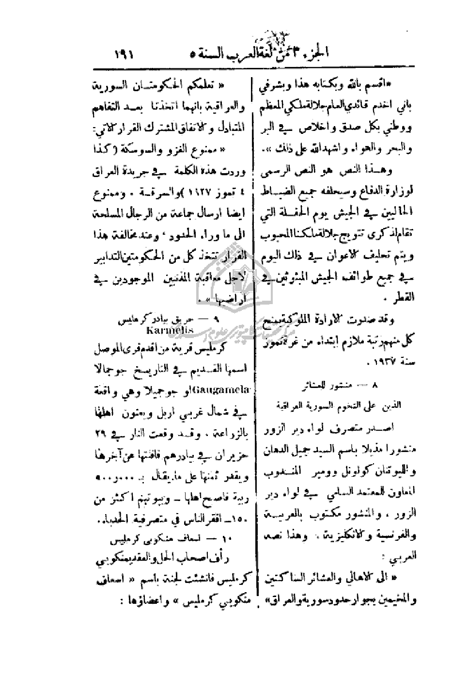 (إلى الأهالي والعشائر الساكنين والمخيمين بجوار حدود سورية والعراق) (تعلمكم الحكومتان السورية والعراقية بأنهما اتخذتا بعد التفاهم المتبادل والاتفاق المشترك القرار الآتي: