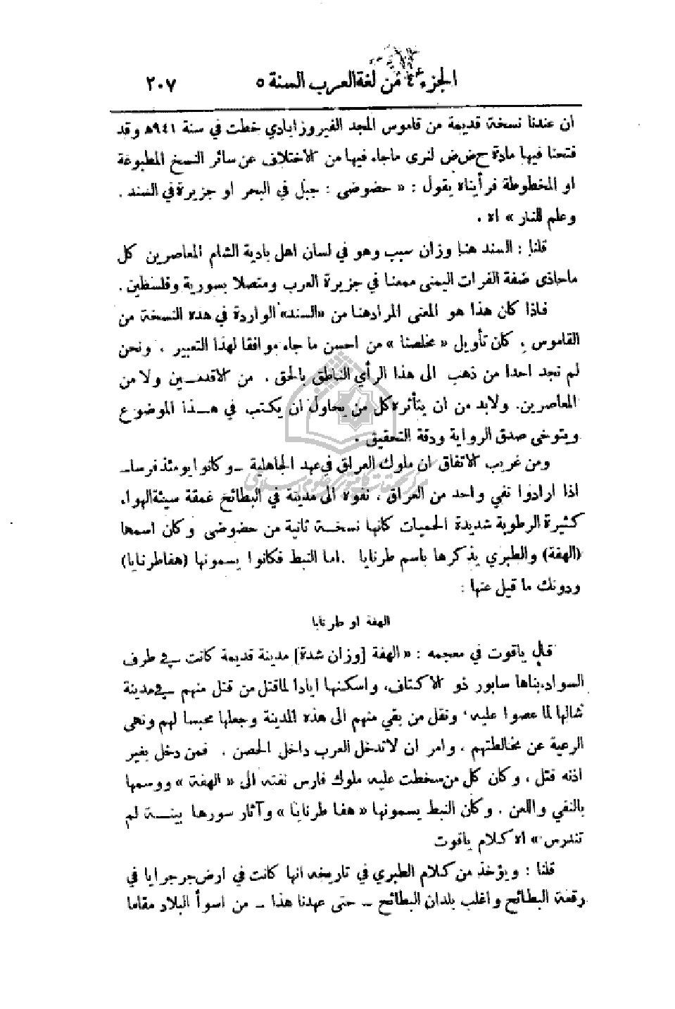 أن عندنا نسخه قديمة من قاموس المجد الفيروز آبادي خطت في سنة 941 هـ وقد فتحنا فيها مادة ح ض ض لنرى ما جاء فيها من الاختلاف عن سائر النسخ المطبوعة أو المخطوطة فرأيناه يقول (حضوضي: جبل في البحر أو جزيرة في السند. وعلم للنار) اهـ.