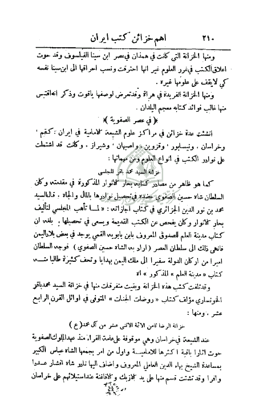 ومنها الخزانة التي كانت في همذان في عصر ابن سينا الفيلسوف وقد حوت اعلاق الكتب