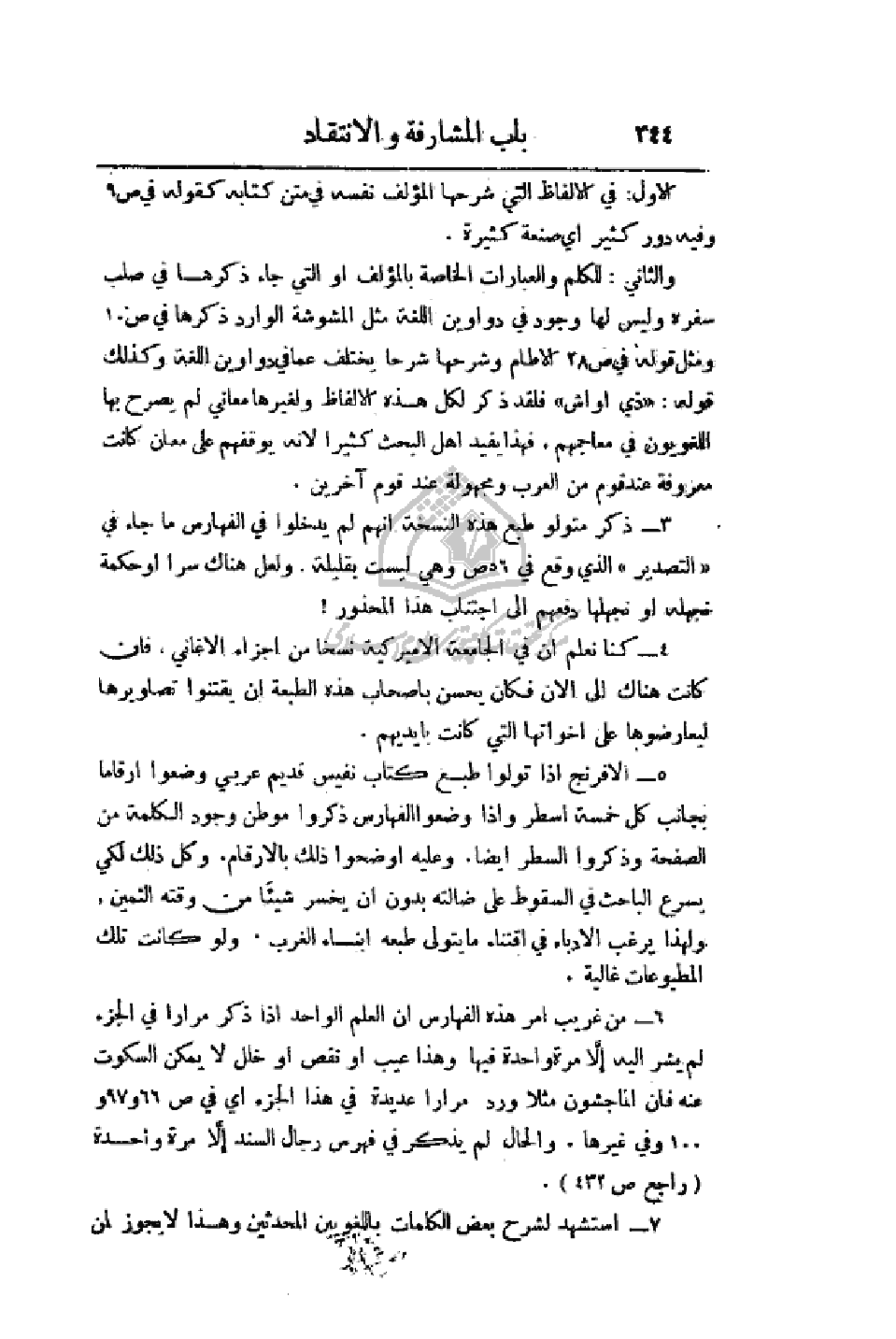 5 - الإفرنج إذا تولوا طبع كتاب نفيس قديم عربي وضعوا أرقاما بجانب كل خمسة اسطر وإذا وضعوا الفهارس ذكروا موطن وجود الكلمة من الصفحة وذكروا السطر أيضا. وعليه أوضحوا ذلك بالأرقام. وكل ذلك لكي يسرع الباحث في السقوط على ضالته بدون أن يخسر شيئا من وقته الثمين، ولهذا يرغب الأدباء في اقتناء ما يتولى طبعه أبناء الغرب، ولو كانت تلك المطبوعات غالية.