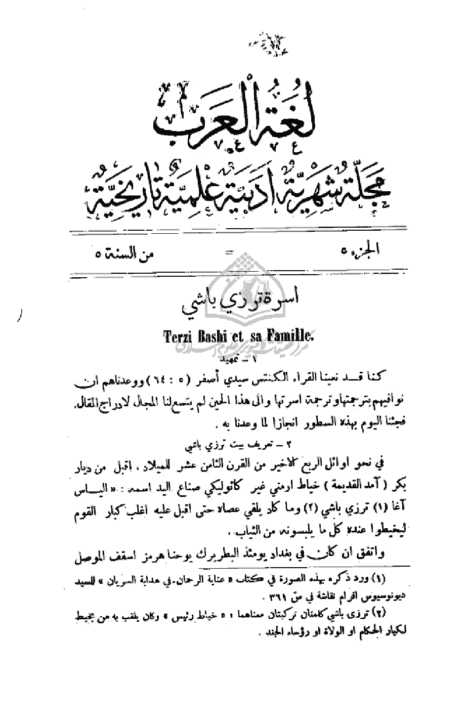 في نحو أوائل الربع الأخير من القرن الثامن عشر للميلاد، أقبل من ديار بكر (أمد القديمة) خياط أرمني غير كاثوليكي صناع اليد أسمه: (إلياس آغا ترزي باشي وما كاد يلقي عصاه حتى أقبل عليه أغلب كبار القوم ليخيطوا عنده كل ما يلبسونه من الثياب.