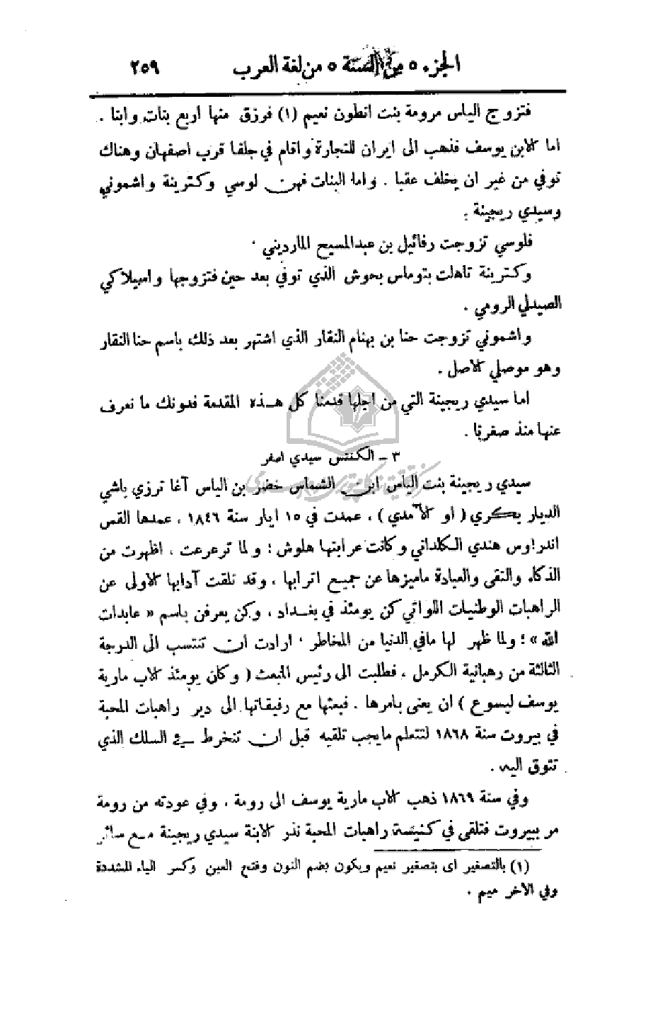 وفي سنة 1869 ذهب الأب مارية يوسف إلى رومة، وفي عودته من رومة مر ببيروت في كنيسة راهبات المحبة نذر الابنة سيدي ريجينة مع سائر