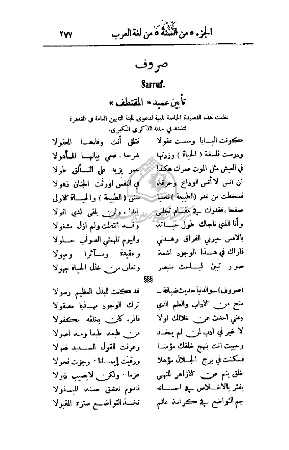 نظمت هذه القصيدة الجامعة تلبية لدعوى لجنة التأبين العامة في القاهرة لتنشد في حفلة الذكرى الكبرى: