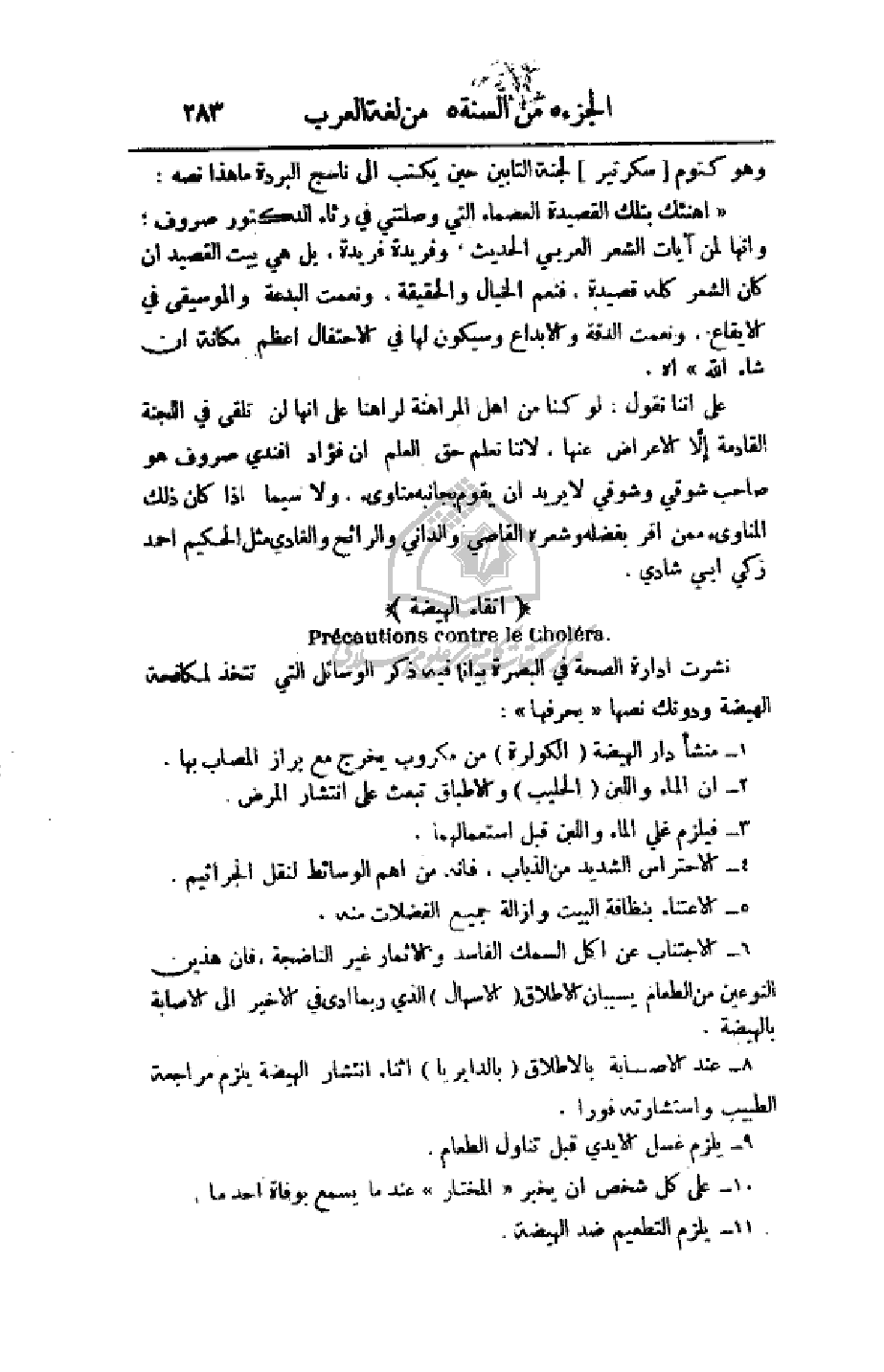 نشرت إدارة الصحة في البصرة بيانا فيه ذكر الوسائل التي تتخذ لمكافحة الهيضة ودونك نصها (بحرفها):