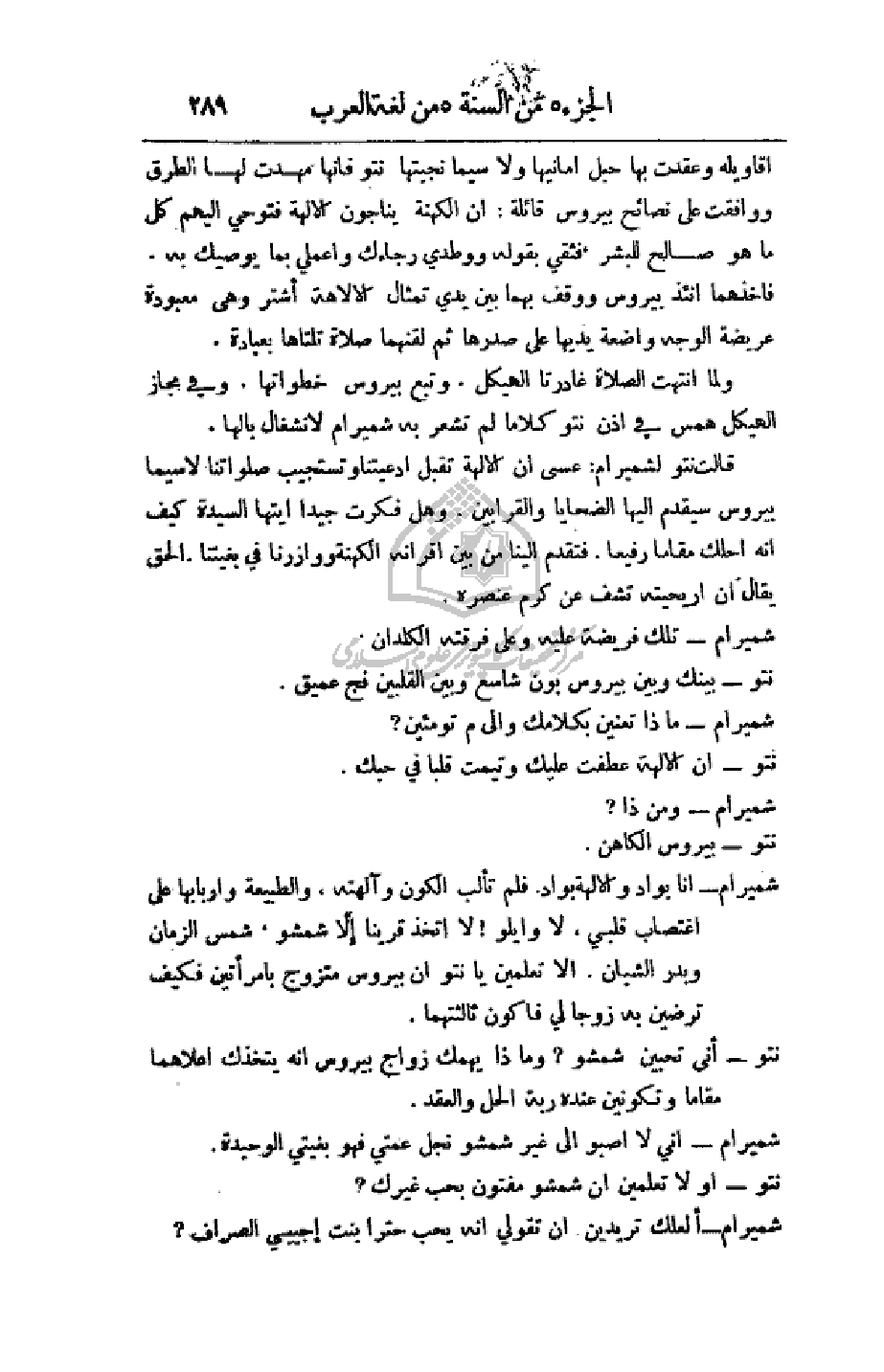 قالت نتو لشميرام: عسى أن الآلهة تقبل أدعيتنا وتستجيب صلواتنا لا سيما بيروس سيقدم إليها الضحايا والقرابين. وهل فكرت جيدا أيتها السيدة كيف أنه أحلك مقاما رفيعا. فتقدم إلينا لمن بين أقرانه الكهنة ووازرنا في بغيتنا. الحق يقال أن أريحيته عن كرم عنصره.