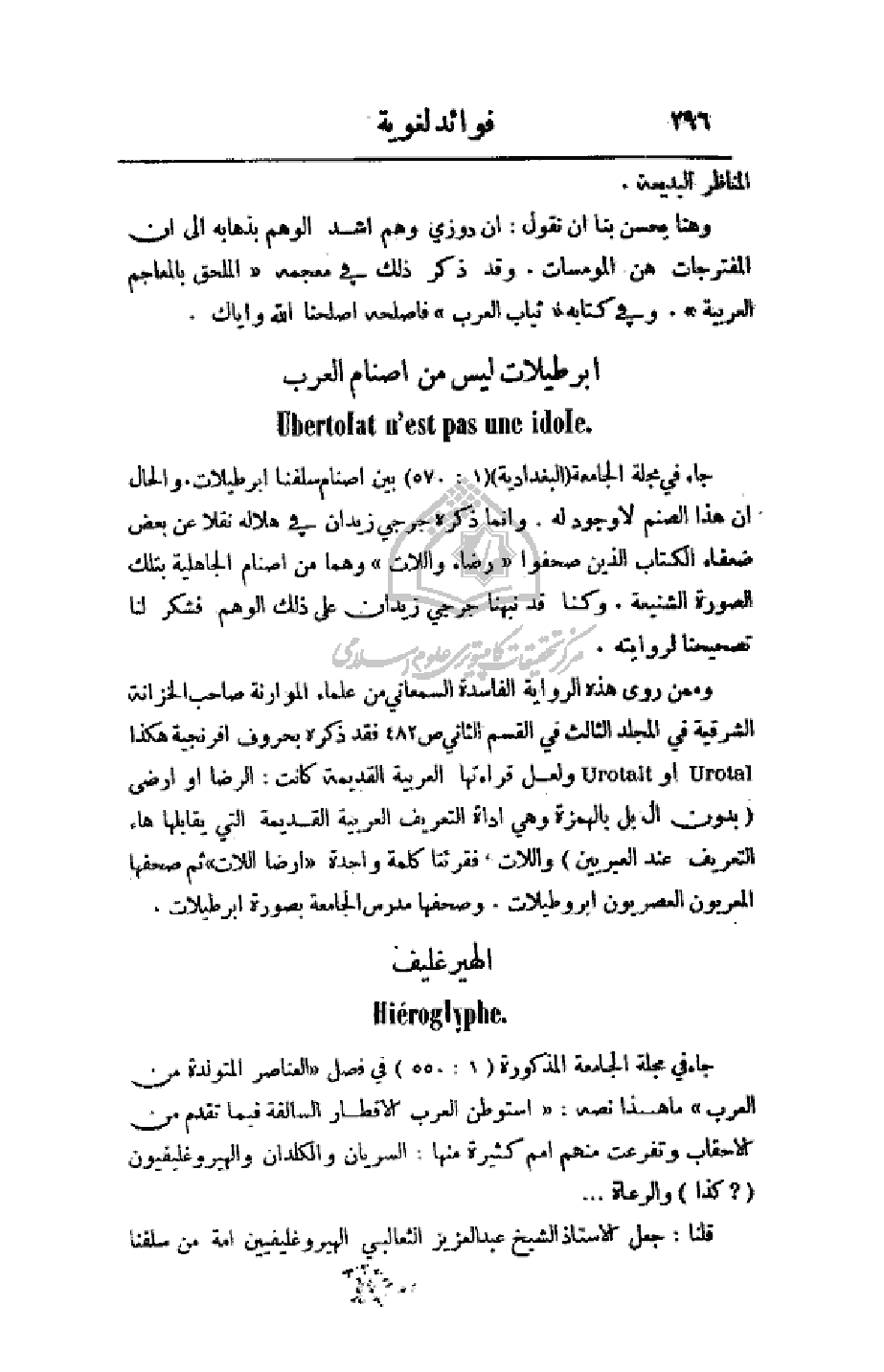 جاء في مجلة الجامعة المذكورة (550: 1) في فصل (العناصر المتولدة من العرب) ما هذا نصه: (استوطن العرب الأقطار السالفة فيما تقدم من الأحقاب وتفرعت منهم أمم كثيرة منها: السريان والكلدان والهيروغليفيون (؟ كذا) والرعاة. . .