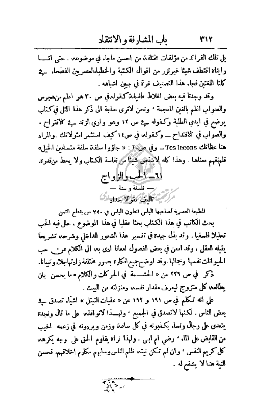 على أنه تكلم في ص191 و192 عن (عقبات التبتل) أشياء تصدق في بعض الناس. لكنها لا تصدق في الجميع، ولهذا لا نوافقه على ما قال ونجده يتعدى على رجال ونساء يكذبونه