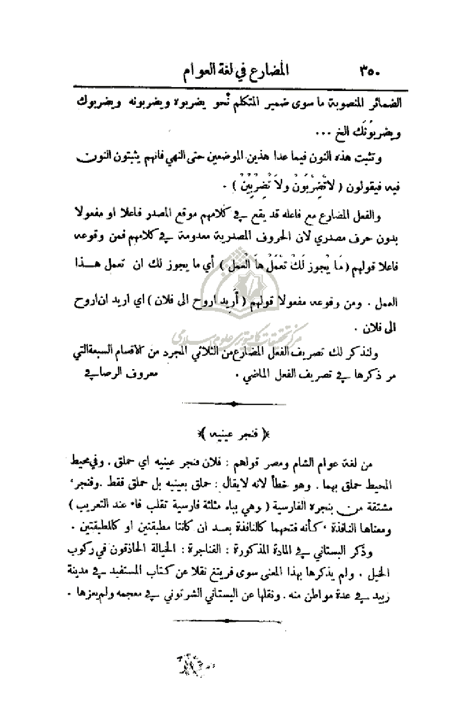والفعل المضارع مع فاعله قد يقع في كلامهم موقع المصدر فاعلاً أو مفعولاً بدون حرف مصدري لأن الحروف المصدرية معدومة في كلامهم فمن وقوعه فاعلاً قولهم (مَا يْجوز لَكْ تِعْمَلْ هَا الْعمل) أي ما يجوز لك أن تعمل هذا العمل. ومن وقوعه مفعولاً قولهم (أَرِيد أروح إلى فلان) أي أريد أن أروح إلى فلان.