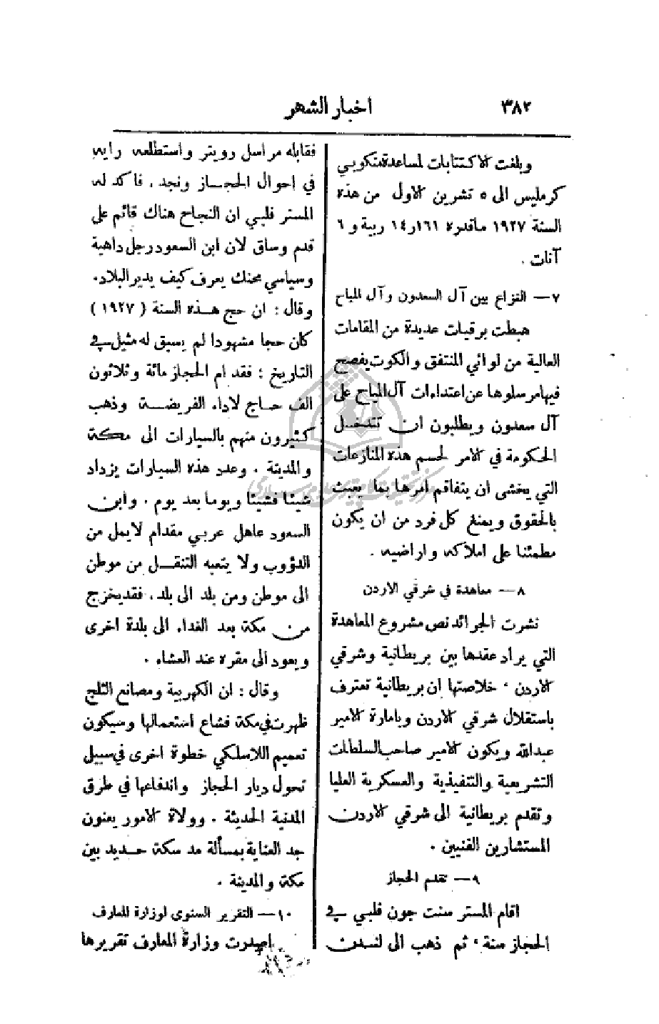 نشرت الجرائد نص مشروع المعاهدة التي يراد عقدها بين بريطانية وشرقي الأردن، خلاصتها أن بريطانية تعترف باستقلال شرقي الأردن وبإمارة الأمير عبد الله ويكون الأمير صاحب السلطات التشريعية والتنفيذية والعسكرية العليا وتقدم بريطانية إلى شرقي الأردن المستشارين الفنيين.