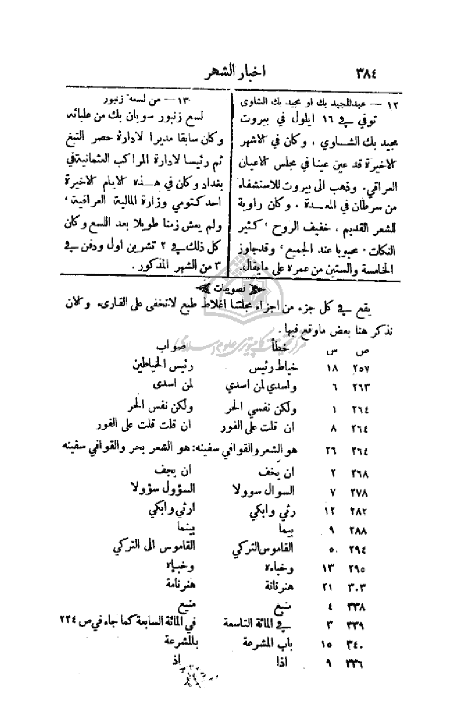 توفي في 16 أيلول في بيروت مجيد بك الشاوي، وكان في الأشهر الأخيرة قد عين عينا