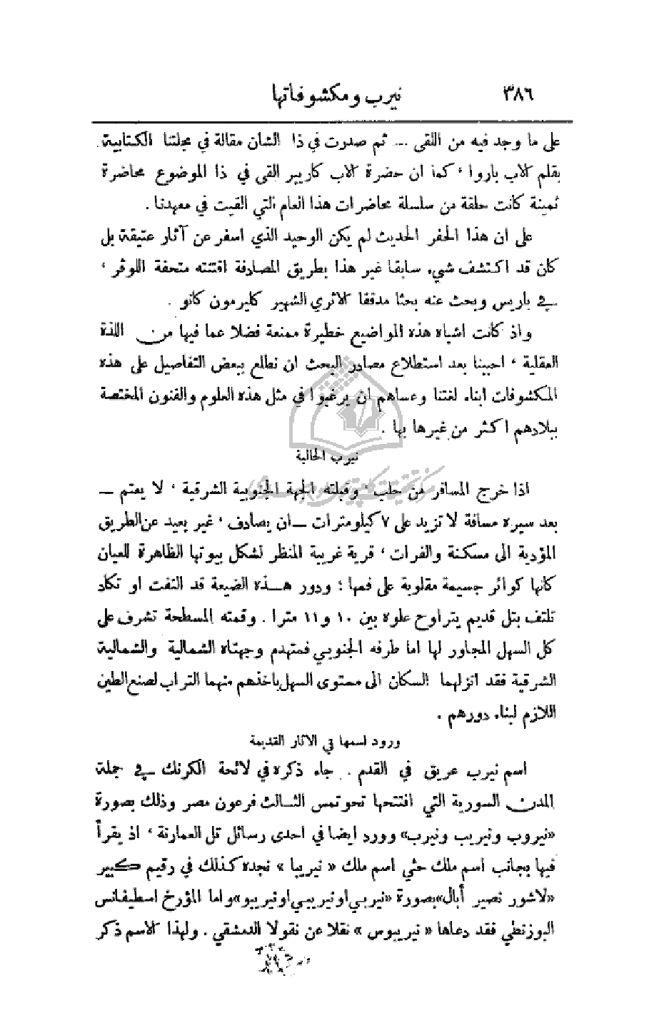 على ما وجد فيه من اللقى - ثم صدرت في ذا الشان مقالة في مجلتنا الكتابية بقلم الأب باروا، كما أن حضرة الأب كايير ألقى في ذا الموضوع محاضرة ثمينة كانت حلقة من سلسلة محاضرات هذا العام التي ألقيت في معهدنا.