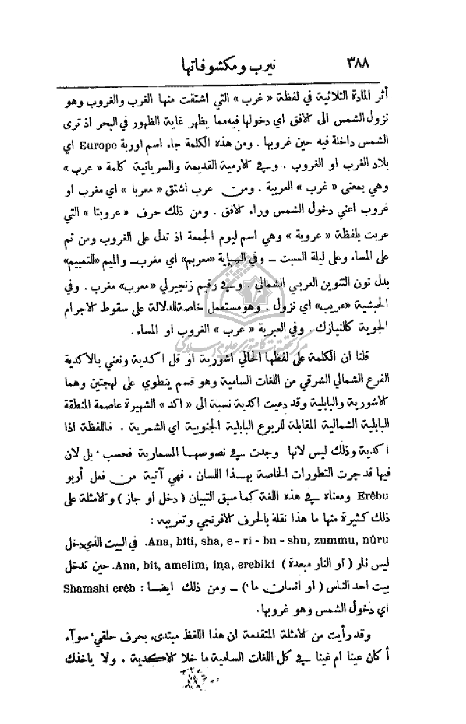 وقد رأيت من الأمثلة المتقدمة أن اللفظ مبتدئ بحرف حلقي، سواء أكان عينا أم عينا في كل اللغات السامية ما خلا الاكدية. ولا يأخذك