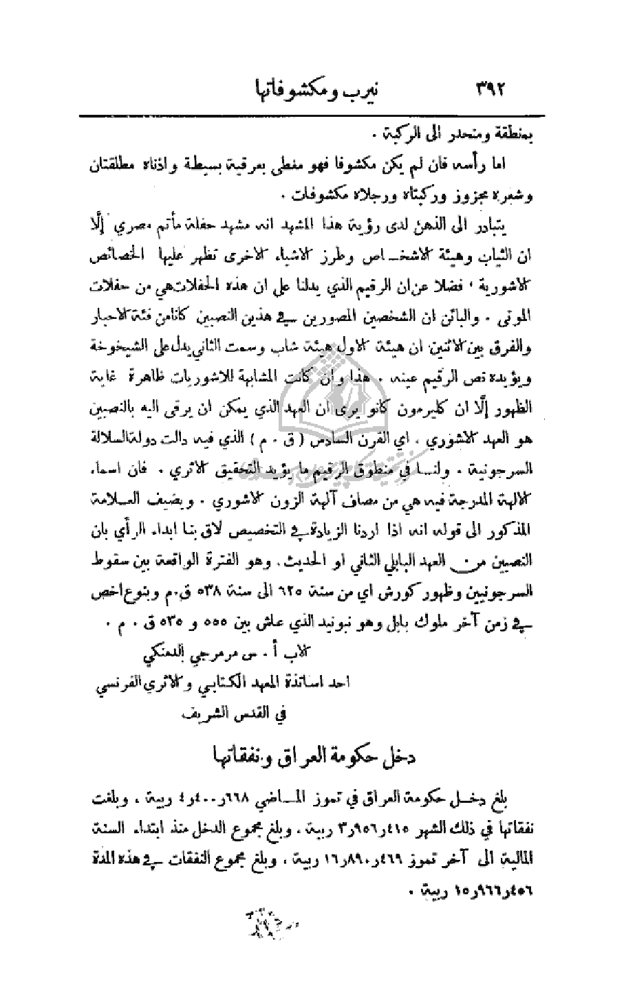 أحد أساتذة المعهد الكتابي والأثري الفرنسي في القدس الشريف دخل حكومة العراق ونفقاتها