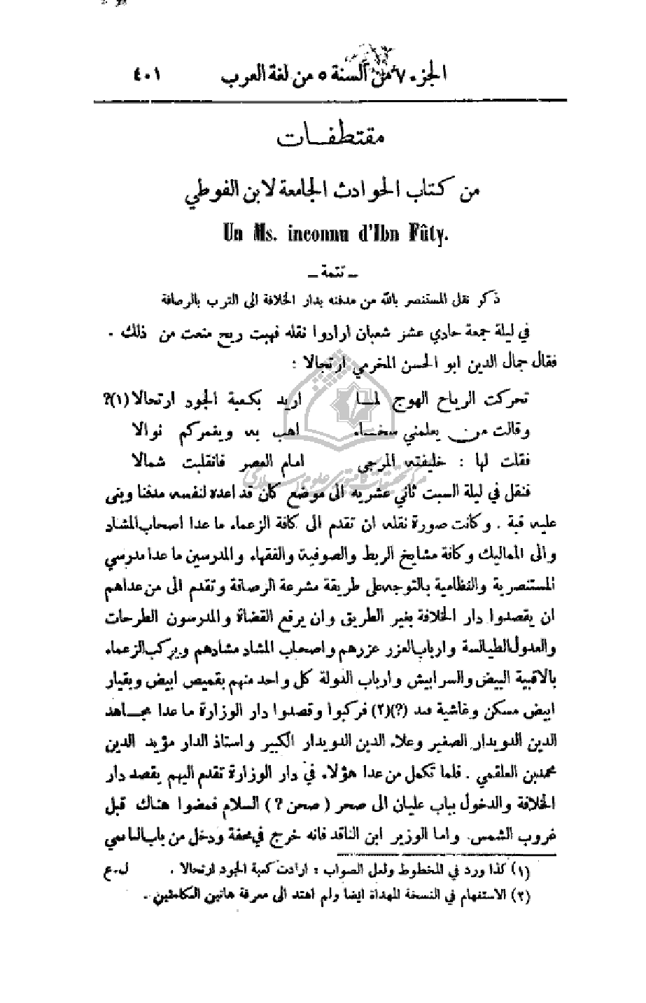 مقتطفات من كتاب الحوادث الجامعة لابن الفوطي