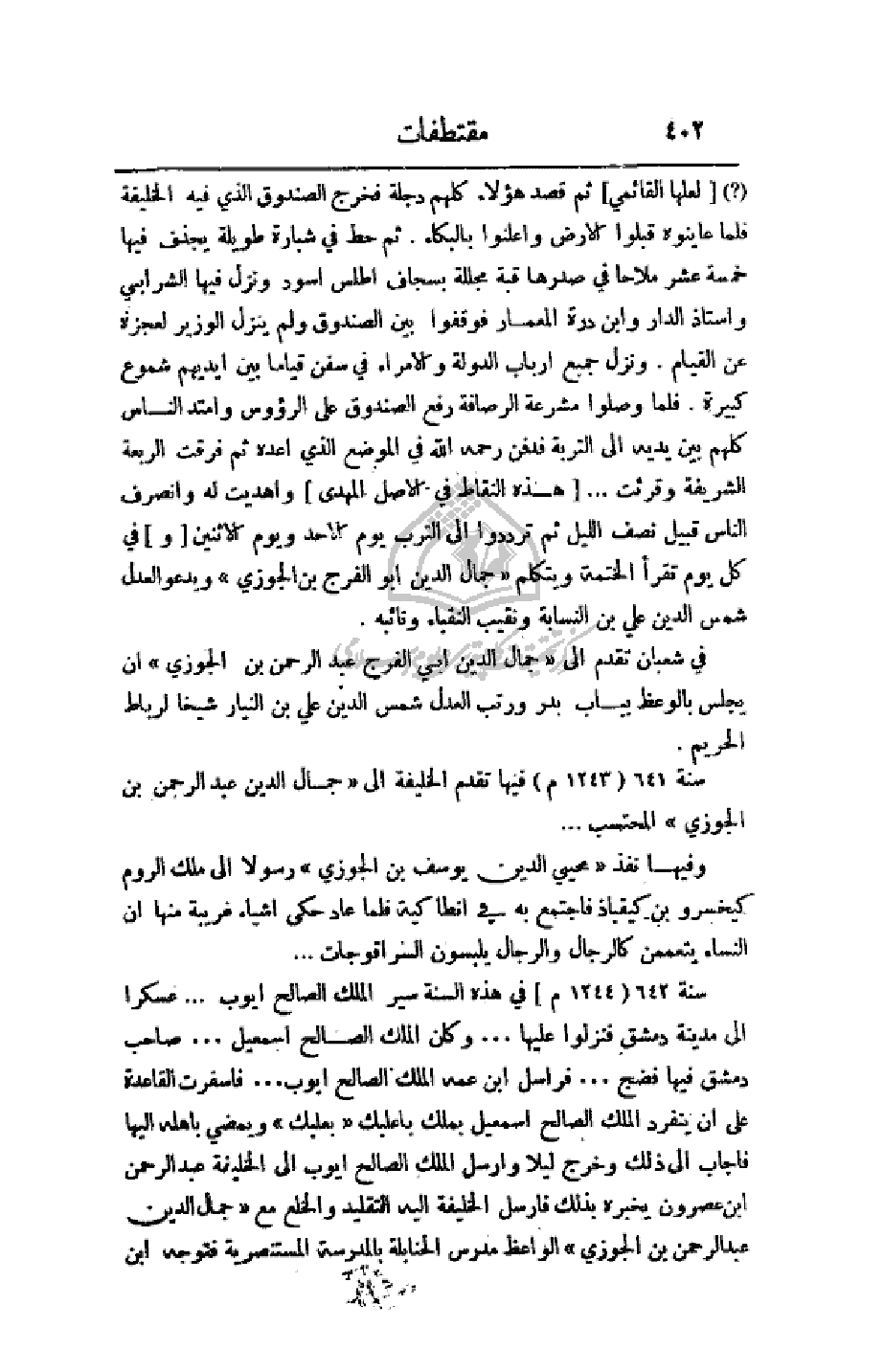 سنة 641 (1243 م) فيها تقدم الخليفة إلى (جمال الدين عبد الرحمن بن الجوزي) المحتسب. . .