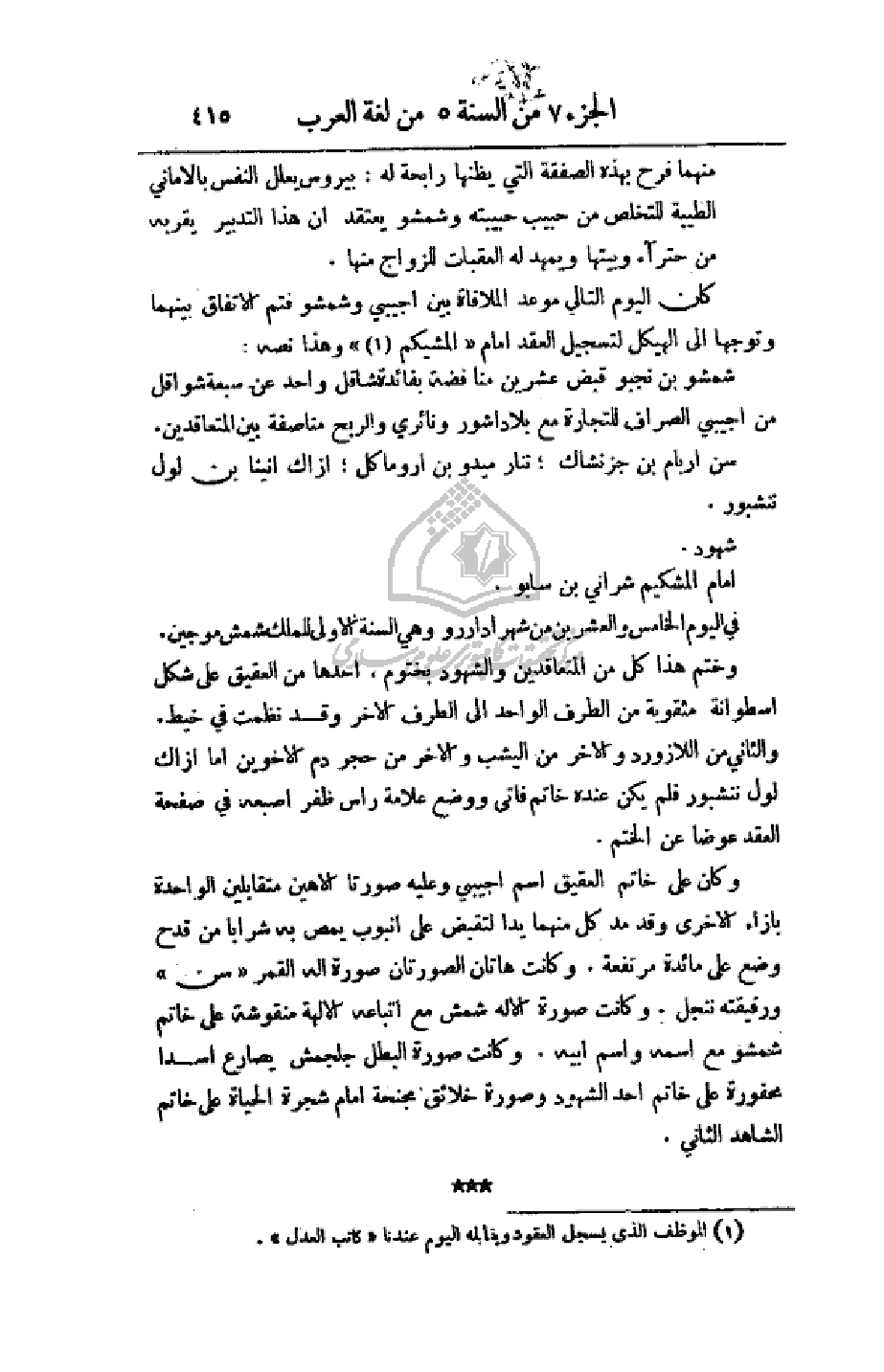 وختم هذا كل من المتعاقدين والشهود بختوم، أحدها من العقيق على شكل اسطوانة مثقوبة من الطرف الواحد إلى الطرف الآخر وقد نظمت في خيط. والثاني من اللازورد والآخر من اليشب والآخر من حجر دم الأخوين أما ازاك لول ننشبور فلم يكن عنده خاتم فأتى ووضع علامة راس ظفر إصبعه في صفحة العقد عوضا عن الختم.