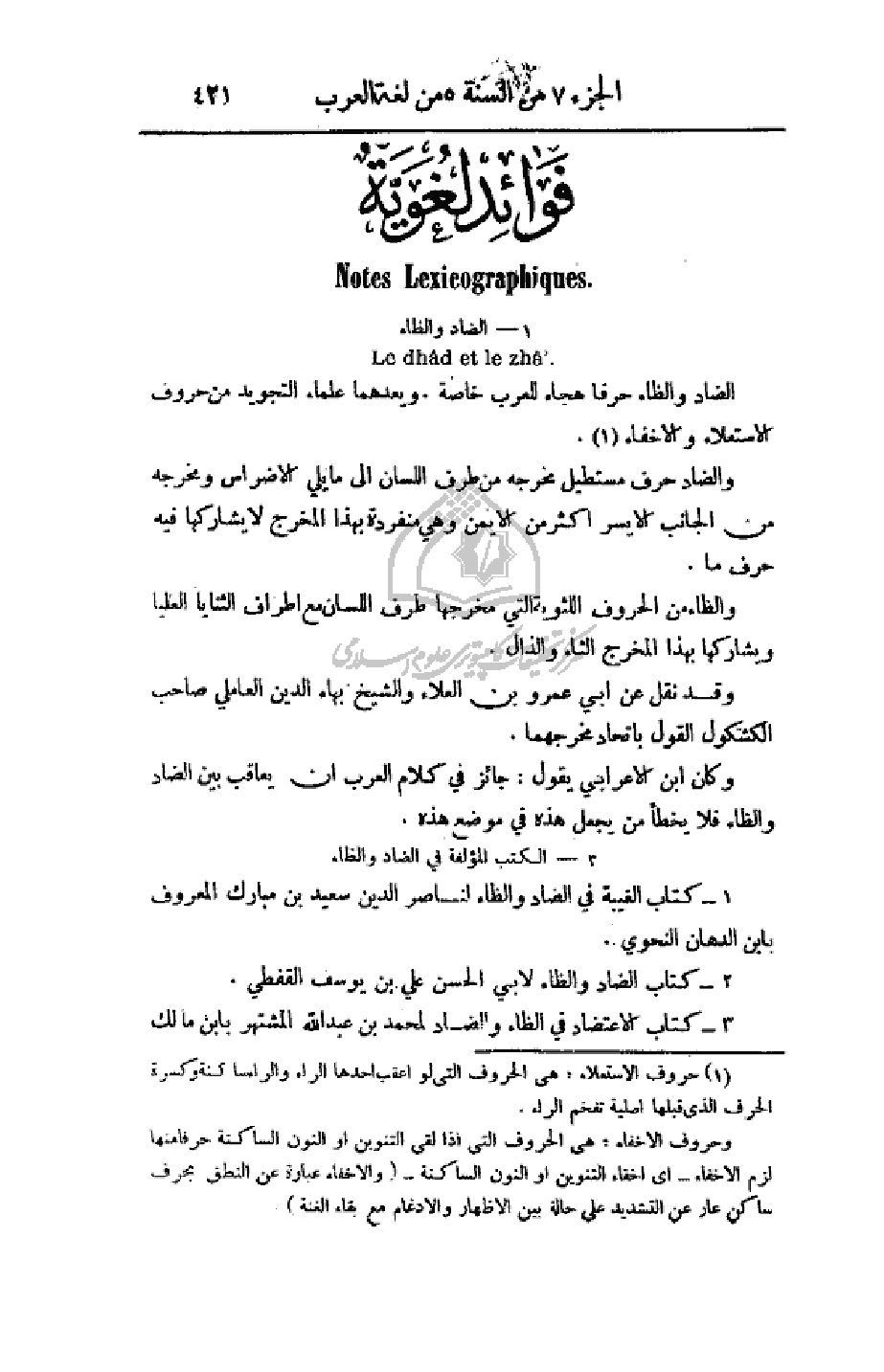 1 - كتاب الغيبة في الضاد والظاء لناصر الدين سعيد بن مبارك المعروف بابن الدهان النحوي.