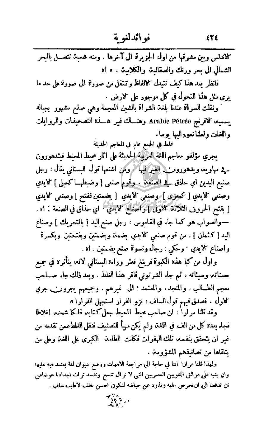 وقد قلنا مرارا: أن صاحب محيط المحيط جعل كتابه فلكا شحنه أغلاطا فجاء بعده كل من ألف في اللغة ولم يكن مهيأ للتصنيف فنقل الغلط عمن تقدمه من غير أن يتحقق بنفسه تلك الهفوات فكانت الطامة الكبرى على اللغة وعلى من يتلقاها من تصانيفهم المشؤومة.