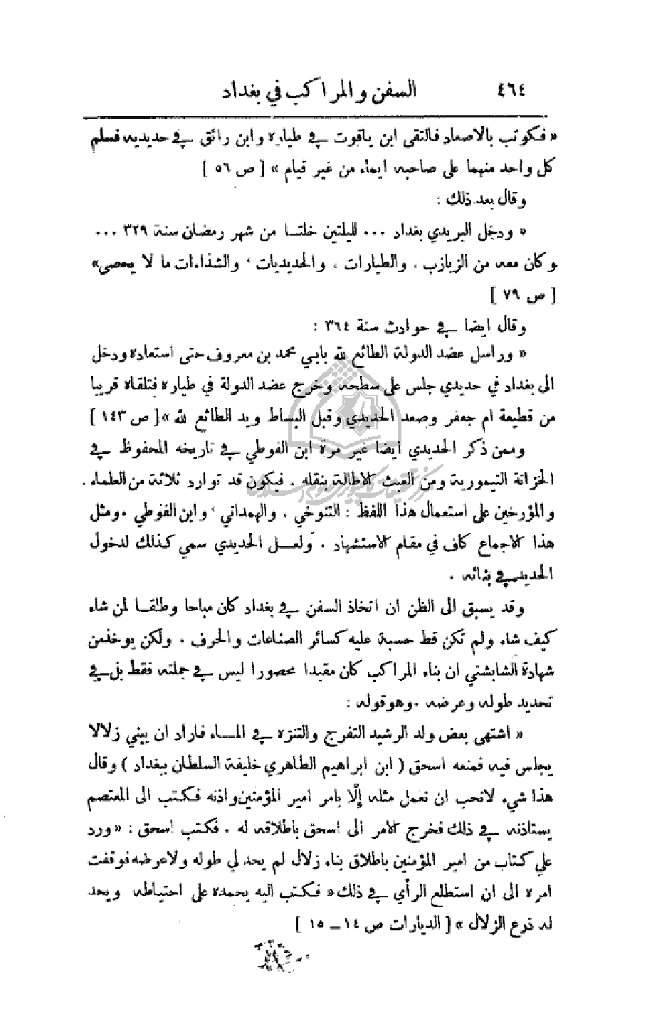 (ودخل البريدي بغداد. . . لليلتين خلتا من شهر رمضان سنة 329. . . وكان معه من الزبازب، والطيارات، والحديديات، والشذاءات ما لا يحصى) (ص79)
