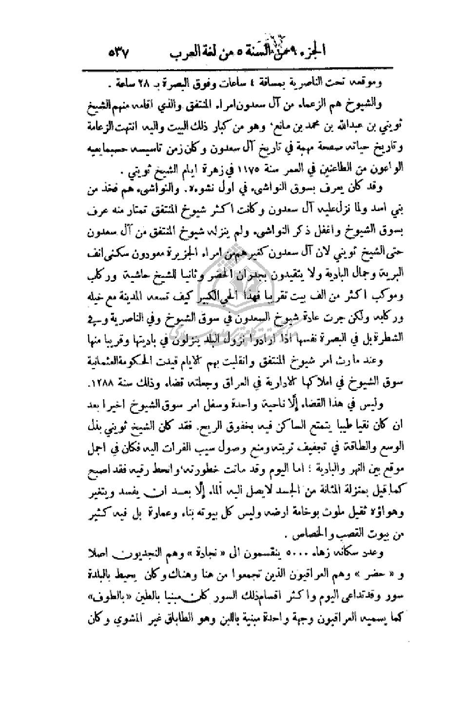 وعند مارث أمر شيوخ المنتفق وانقلبت بهم الأيام قيدت الحكومة العثمانية سوق الشيوخ في أملاكها الإدارية في العراق وجعلته قضاء وذلك سنة 1288.