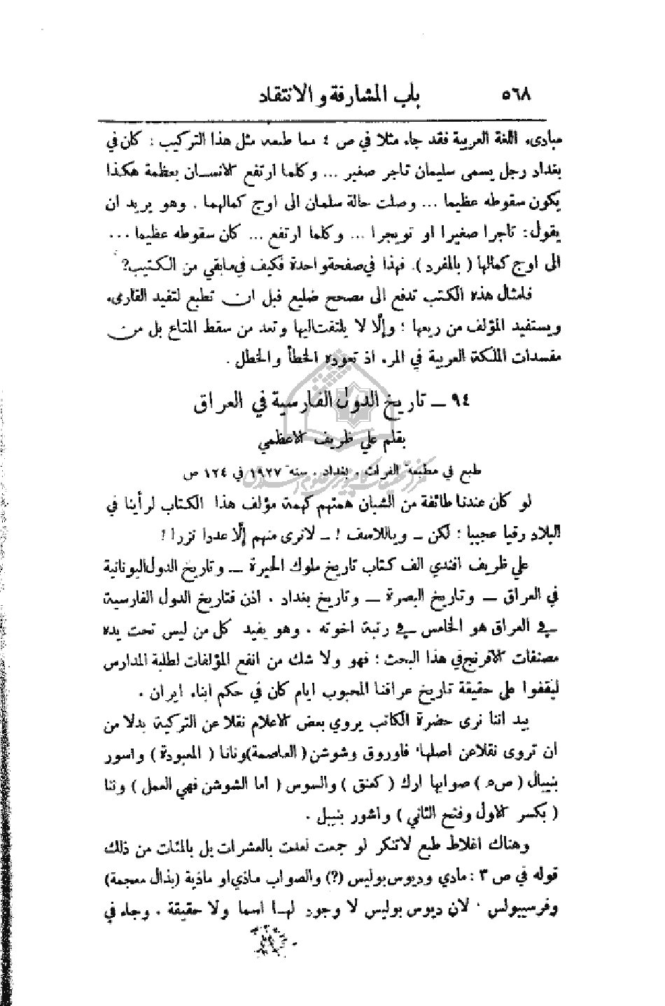 وهناك أغلاط طبع لا تنكر لو جمعت لعدت بالعشرات بل بالمئات من ذلك قوله في ص3: مادي وديوس بوليس (؟) والصواب ماذي أو ماذية (بذال معجمة) وفرسيبولس. لان ديوس بوليس لا وجود لها اسما ولا حقيقة. وجاء في