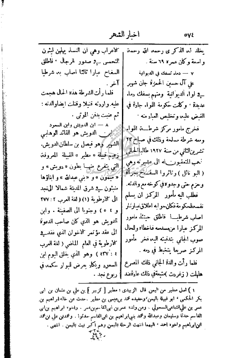 ابن الدويش هو القائد الوهابي الشهير وهو فيصل بن سلطان الدويش. زعيم قبيلة (مطير) القبيلة المعروفة التي يتفرع منها بطون (دويش) و (ميمون) و (بني عبد الله) وأبناؤها منبثون في شرق المدينة شمالا إلى نجد إلى الارطوية (لغة العرب 2: 277 و54 وجنوبا إلى الصفينة. وابن الدويش هو الذي كان صاحب الدعوة إلى عقد مؤتمر الإخوان الذي عقد في الارطوية في العام الماضي (لغة العرب 4: 437) وهو الذي يقلق اليوم ابن السعود ويكاد يعرض للبوار حكمه في ربوع نجد.