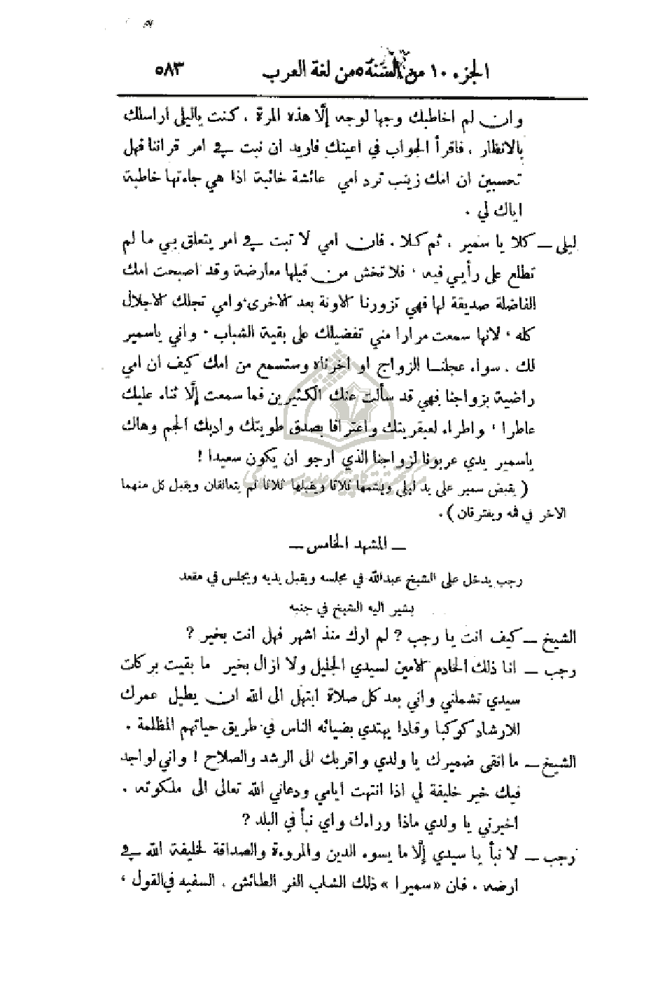 (يقبض سمير على يد ليلى ويشمها ثلاثاً ويقبلها ثلاثاً ثم يتعانقان ويقبل كل منهما الآخر في