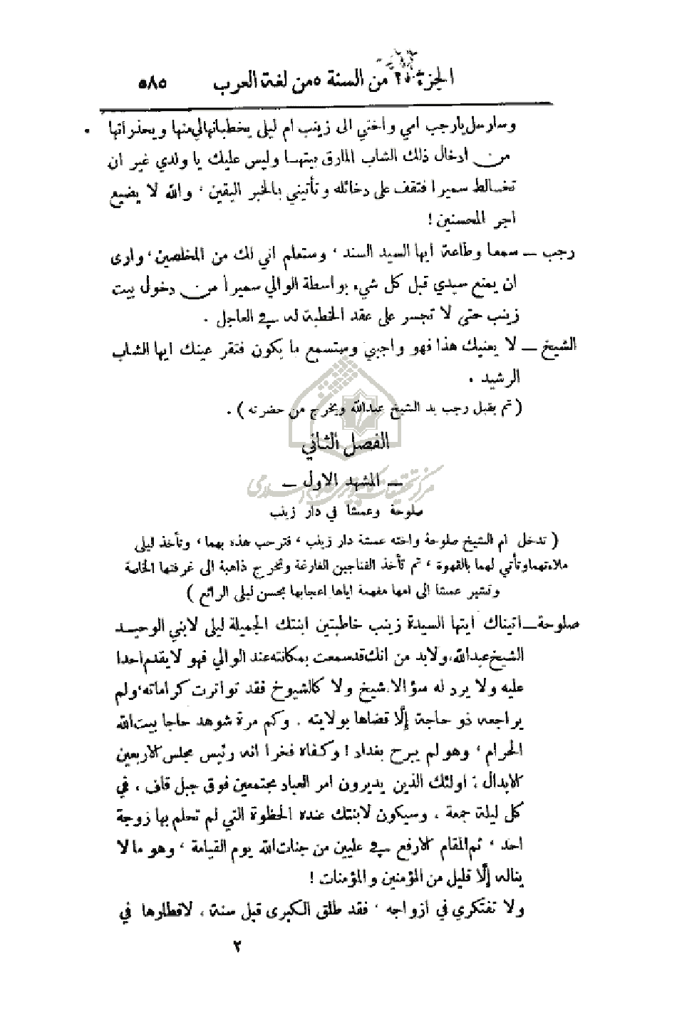 وسأرسل يا رجب أمي وأختي إلى زينب أم ليلى يخطبانها لي منها ويحذرانها من إدخال ذلك الشاب المارق بيتها وليس عليك يا ولدي غير أن تخالط سميراً فتقف على دخائله وتأتيني بالخبر اليقين، والله لا يضيع أجر المحسنين!